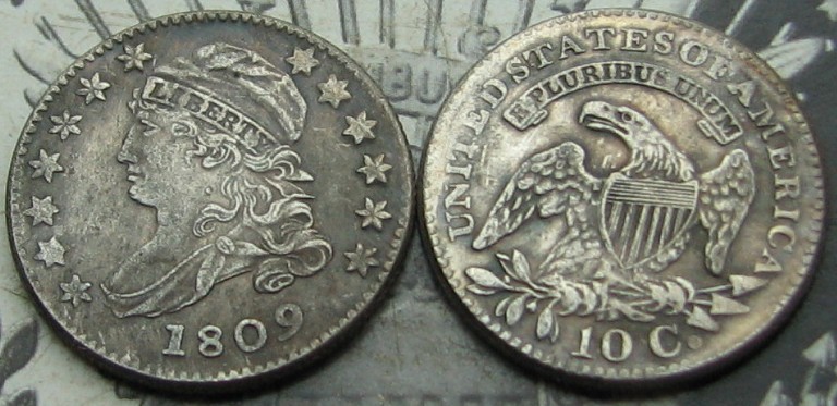 That coin is fake. Edit to add: There is only one variety for the 1809 capped bust dime, and yours does not match up with the correct diagnostics. All one needs to do to tell is compare the pictures in Doug's post to yours. Look at the star pointing at the headband, and also compare where the stars point in relation to the dentils.