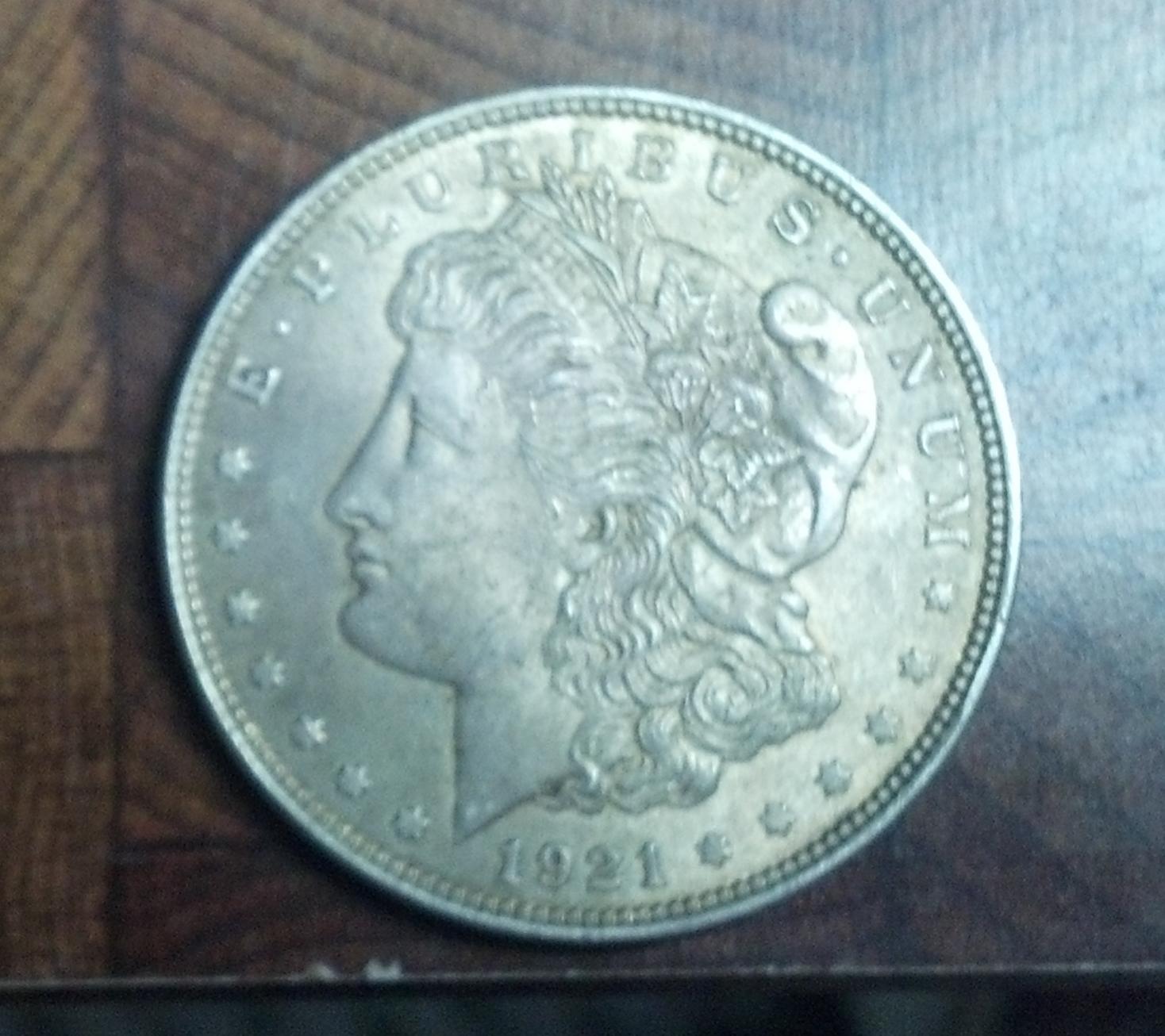 The coin has not been cleaned, the picture just makes it look like it. There is a light just overhead of where I took the picture hoping that it would show more of the detail on the coin.