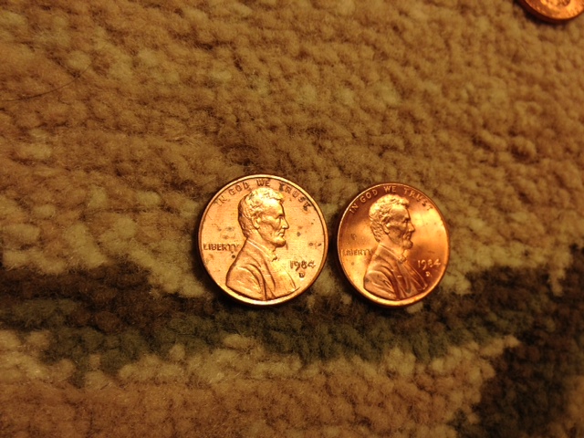 These are both 1984 D pennies but the one on the left has an odd color that I havnt seen on any other penny and I compared it with a reguler looking 1984 D penny on the right. Thank you for your help.