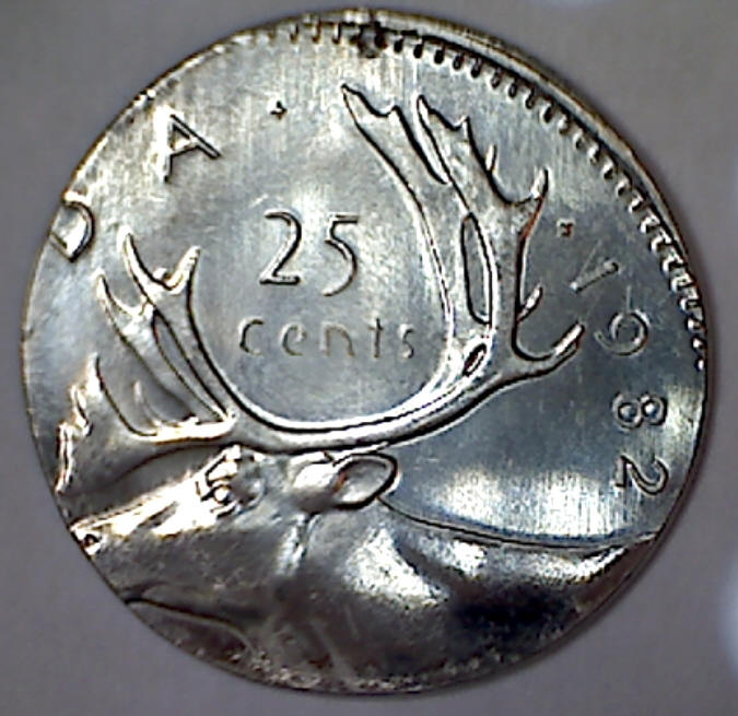 Canadian Quarter struck on one cent planchet Canadian Quarter struck on ten cent planchet