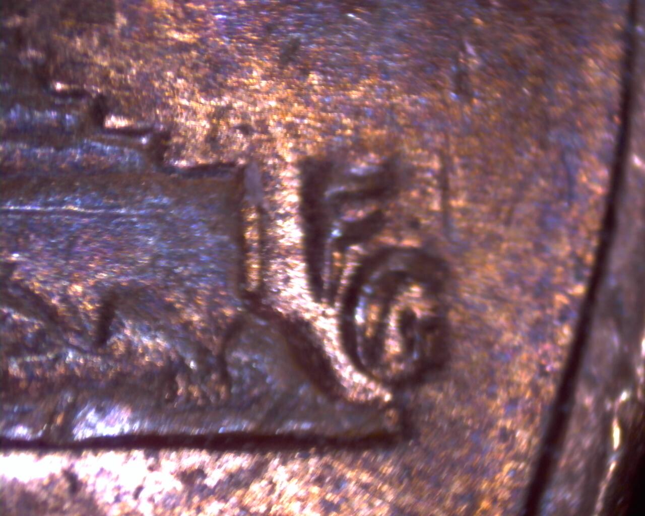 The reverse initails FG are a bit twisted/angled forward here. The G seems to have the most angled degree of turn and the F just appears to have a portion of the letter curved upwards. The coin is a 1968 D Lincoln Memorial Cent. This is another exciting addition to my collection of errors and unique Lincoln Memorial Pennies. I think its a rather uncommon fluke to even see something like this. I really get surprised to find such odd things on a penny.