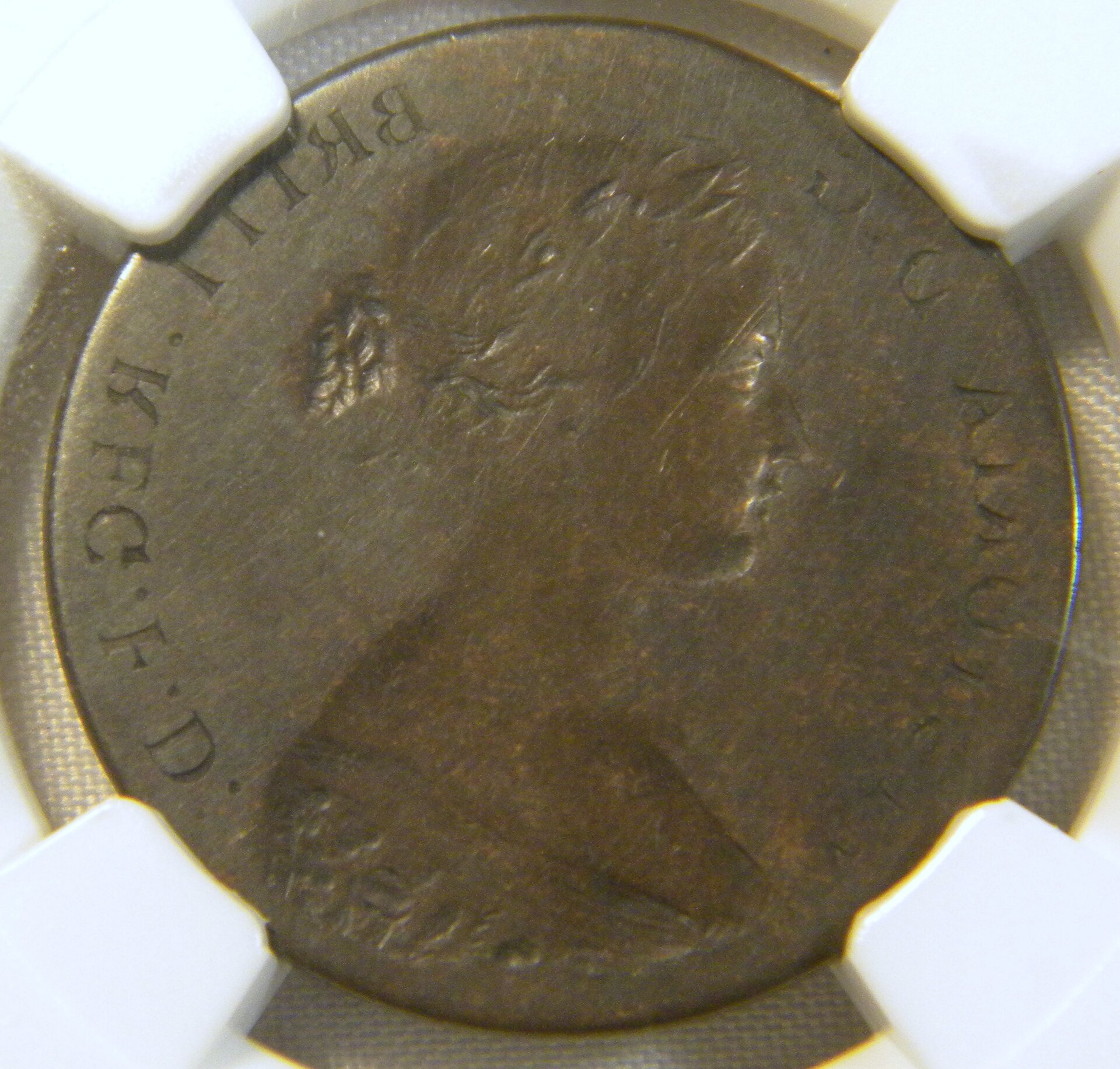 Here is the only brockage I have. It is counterfeit, British made, British half penny. This was far more affordable than a U.S. coin brockage. Here a normal example of the counterfeit. I am going to assume that the obverse die is at the bottom on the press. This is the way the press was usually set up because the bottom die lasts longer the top or striker die. Since it often takes more effort to make an obverse die, the the coiners would prefer for it to last longer. For the brockage, the previous coin stuck to the upper die. When a blank is inserted and the coin stuck, the previous coin's obverse struck the reverse of the planchet, therefore creating the mirror image. The obverse of the brockage would be normal.