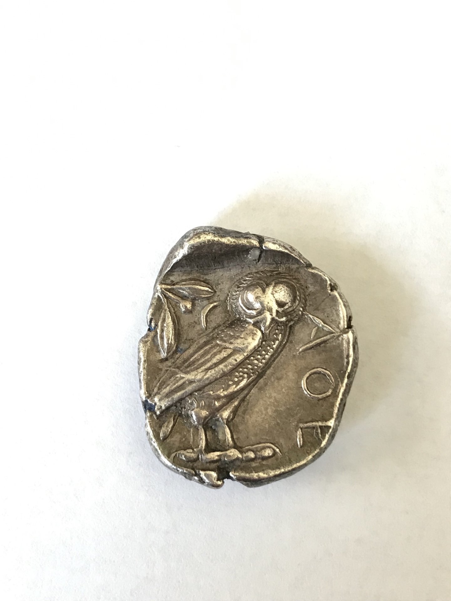 Welcome to the Forum! The coin is a silver tetradrachm from Athens, minted around 454 - 404 B.C. - during the height of ancient Athen's glory and power. They were struck in huge numbers and used to pay for things like the Parthenon on the Acropolis, and the Peloponnesian War. As you can imagine they are highly collectible! Despite the fact that large hoards have been recently found, the prices stay up around several hundred dollars for a decent one. Here is mine which I purchased from CNG auction house: