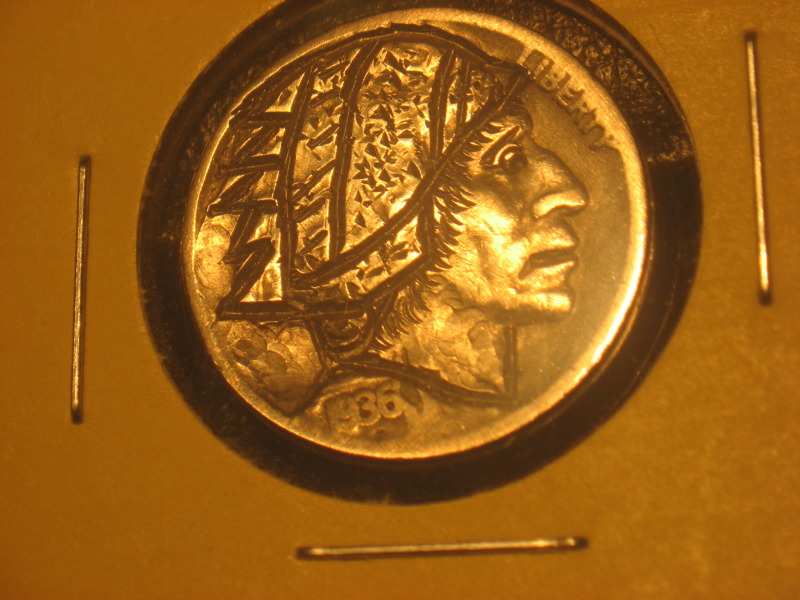 I have been carving nickels for about four years now. Thats what got me intrested in coin collecting. I guess for most people its the other way around. Ive been lurking around this forum for a while trying to get a better idea of what collectors look for in coins and what I should be looking for. I've seen some cool stuff. I like the ancients a lot. Anyways, heres a couple of my carvings. I sell mostly on ebay. John Schipp