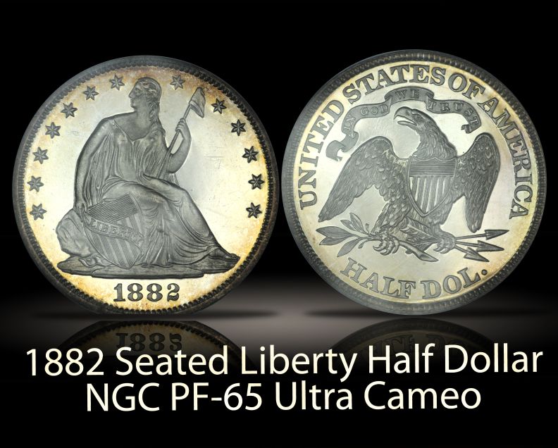 To prove I have not been sleeping through my Advanced Digital Coin Photography course during Week 2 at ANA Summer Seminar below are four examples of what I have learned how to do. The instructor brought this beautiful Proof Walker. It was a very difficult coin to photograph. The 1903 IHC is mine. The 1882 Seated Liberty Half is also mine. I have posted photos of it before but these are the best photos I have taken of it - so far. I think they turned out quite well. Let me tell you, it is difficult to take good photos of Proof coins. All photos of Proof coins were taken using axial lighting. Axial lighting brings out both the mirrors of the fields and toning that cannot be captured using other lighting methods. The 1871 Seated Liberty Dollar belongs to a classmate. I lost track of how many shots it took before I got one (of each side) that was acceptable. But the results were worth it.