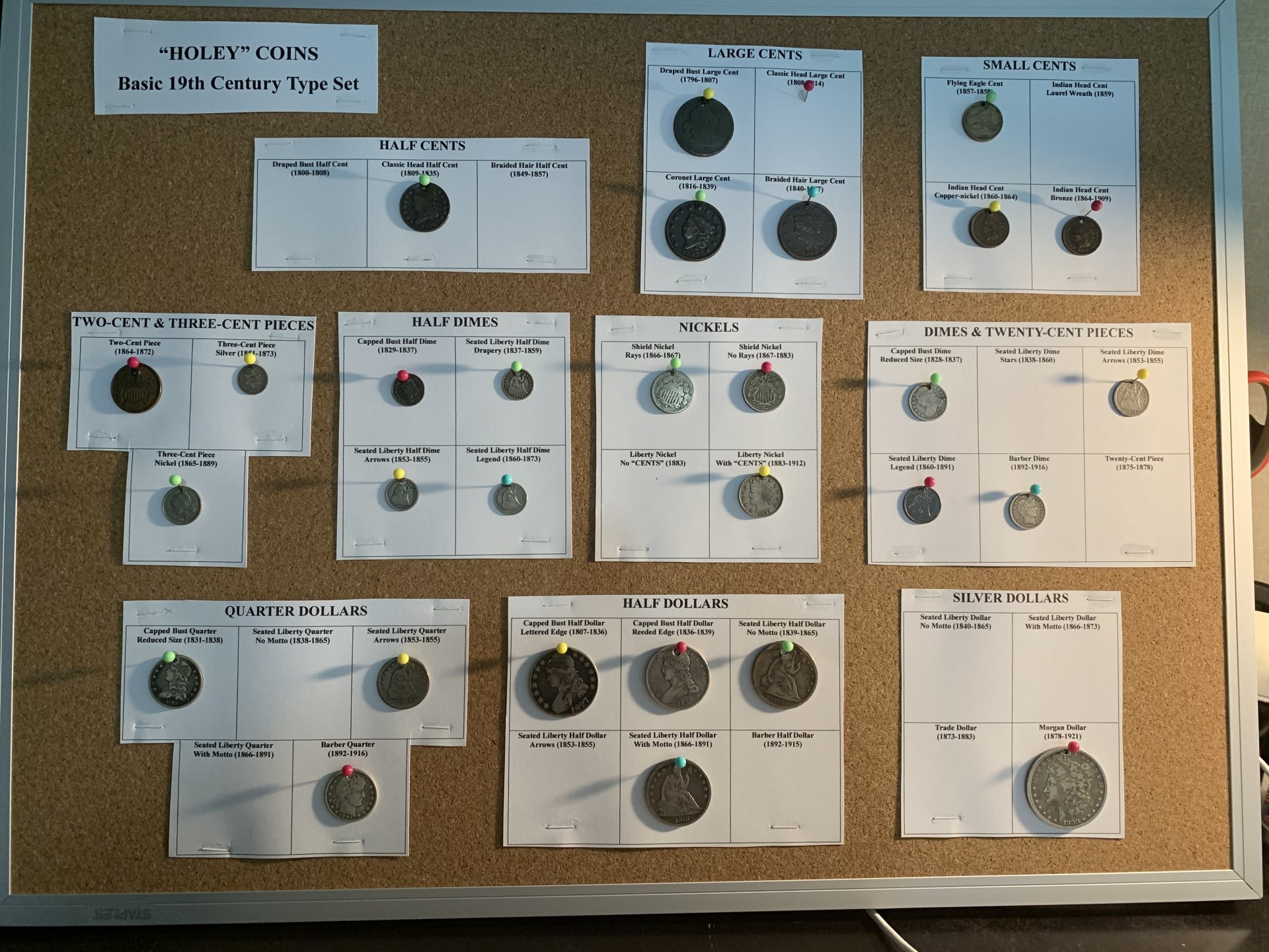 Update: better layout, all on one board. Fixed the missing cell for the Flying Eagle cent (and one is on the way, along with 15 other holeys not yet seen here).