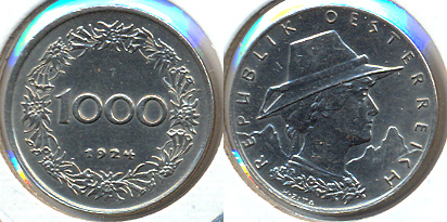1000 kronen 1924, copper-nickel, mintage - 72353000 pcs.