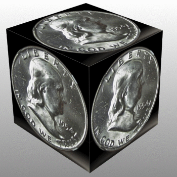 This time Instead of laying the coin flat on a table, I stood it up, and pointed the lights at it.