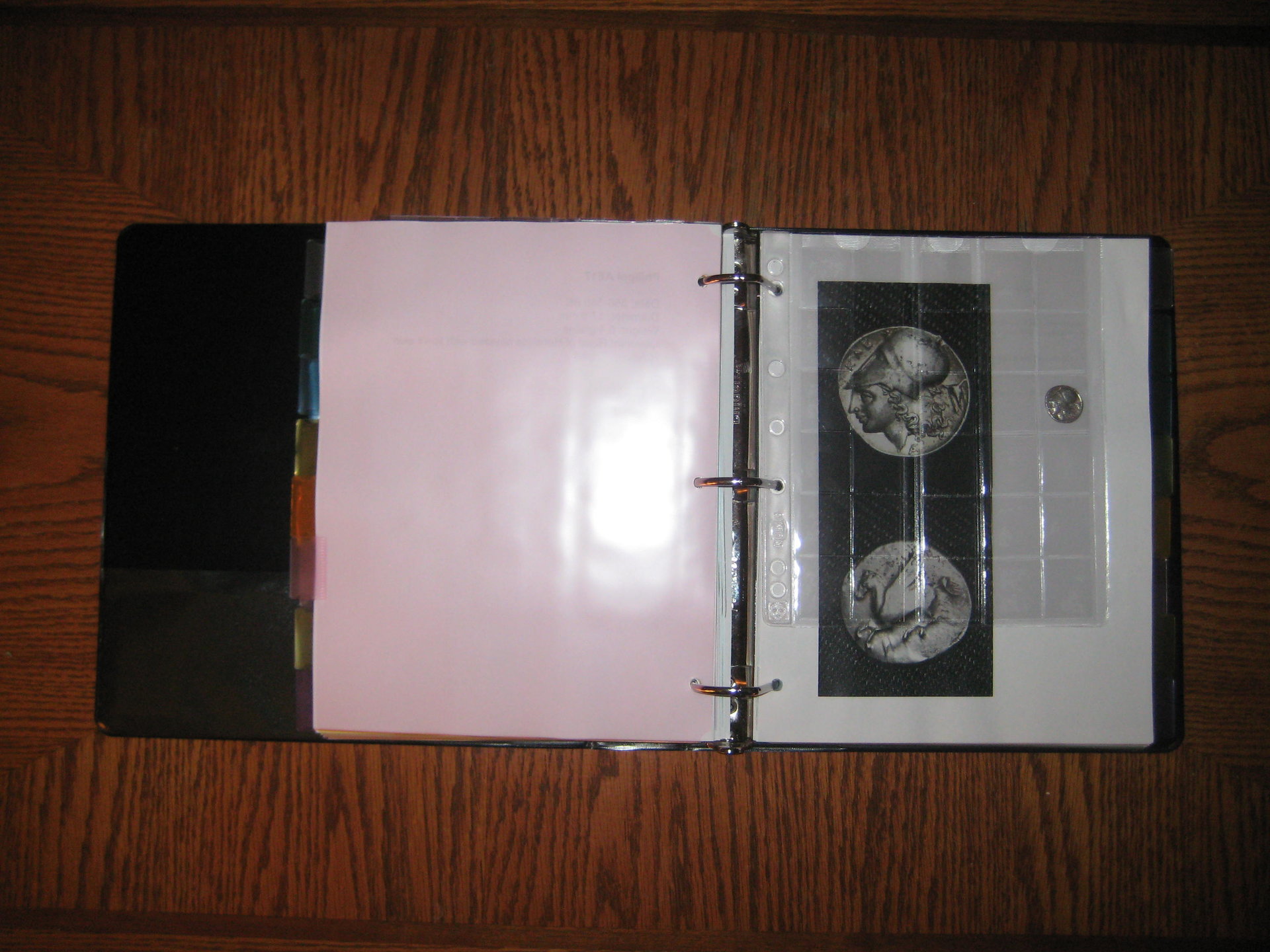 12. I have a custom emblem that my Father and I created for his business that I use on the front side of my flips, for uniformity. The back has all printed info with a number that correlates to another binder with previous flips/pedigrees. Coins separated by Greek, Roman Republic, Roman Imperial, then Misc binders.