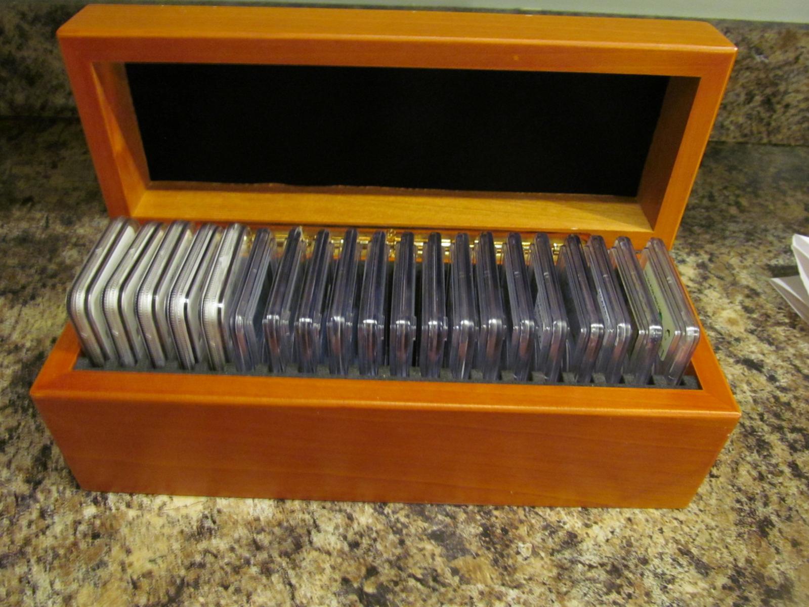 That box is an absolutely terrible idea ! I can think of very few options that could come anywhere near being as bad for storing your slabbed coins as that wood box is.
