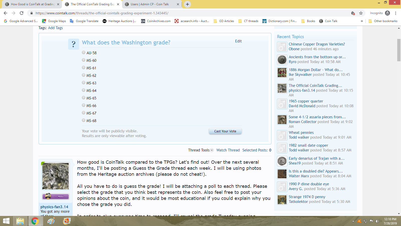 Agreed, more often than not the crowd average agrees if I feel a coin I bought is overgraded, or confirms if it’s strong for the grade/under. They are educational in all sorts of ways; I will add polls to mine in the future as well. Great thread