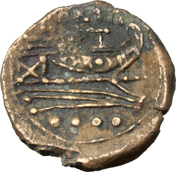 The average condition of my RR bronze coins is lower than my RR silver. I find well worn bronze coins that shill show its major features good enough. I purchased a coin today that would normally be below the line. You can tell why I bought this coin from the obverse. Who would you expect on the obverse of a 3 dotter (Quadrans)? I do not like the ruff surfaces on this coin. The major features are there. You can tell it is an older coin because of the form of the letter A. This is the most common form of the letter A in early struck bronze coins, before 200 BC. A few other forms are common: The letter A we use today was a latecomer, 150 BC. Normally a Quadrans would have Hercules on the obverse. This coin has: Mercury. Roman Republic, anonymous AE Quadrans, Luceria, ca. 211-208 BC. Obv - Head of Mercury on the right, above three dots °°°, below L. Rev – Prow of Roman warship, in ex: three dots °°°. Weight = 10.51 grams Diameter = 23.3 mm Cr. 97 / 13d BMCRR – Italy _ _ , Grueber assignes no number to the Hercules / prow Quadrans shown between Italy #6 & Italy #7. There is no description in the main text for a Quadrans with Mercury, but one is mentioned in the notes. Grueber II pg 147 in footnote 3: “D’Ailly (Mon rom, pl. civ., nos. 4, 5) figures two quadrantes with the obverse type of the sextans, i.e. bust of Mercury…. which must be due to a blunder on the part of the die engraver. “ Garrucci – pg. 69, Table LXXXI #3 I have another error on a Quadrans. 3 dots on obverse & 4 on reverse. Post your not quite right coins.