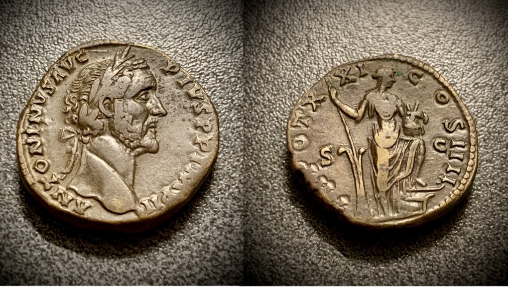 I just had to post this little darling again: Antoninus Pius Aureus - Standing with Globe Obverse: Laureate head right - ANTONINVS AVG PIVS P P IMP II Reverse: Antoninus standing left wearing toga and holding globe in right hand - TR POT XIX COS IIII Gold, 19.5mm, 7.26gm Catalog: RIC 256a (Roman Imperial Coins) Struck: AD 155-156, Rome "He's got the whole world in his hands"