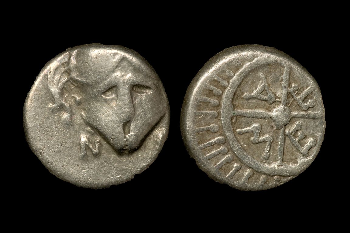 Massalia, Gaul, obol, ca. 4th–1st century BC. Obv: Youthful male head (river god?) left. Rev: MA in wheel with four spokes. 10.65mm, 0.75g. Ref: SNG Copenhagen 723–728; de la Tour 1892, no. 689 or similar. Ex Marc Breitsprecher.