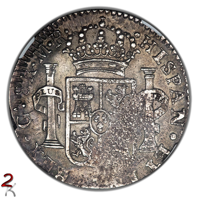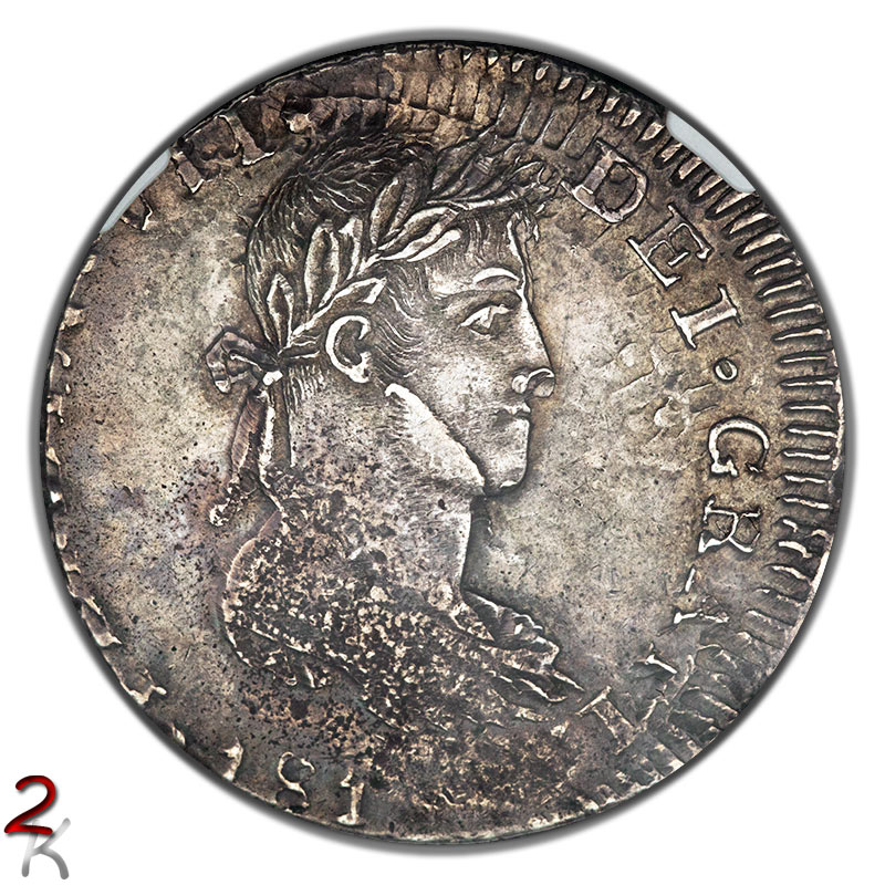 This 8 Reales is from the Mexico War of Independence provisional mint at Guadalajara. I will mention that it was struck over a cast planchet, thus the areas of porosity. The last digit of the date is also not struck-up, but it is an 1814 easily identifiable by the bust to those familiar with the series. Other than that - how many (and which ones) errors can you count?