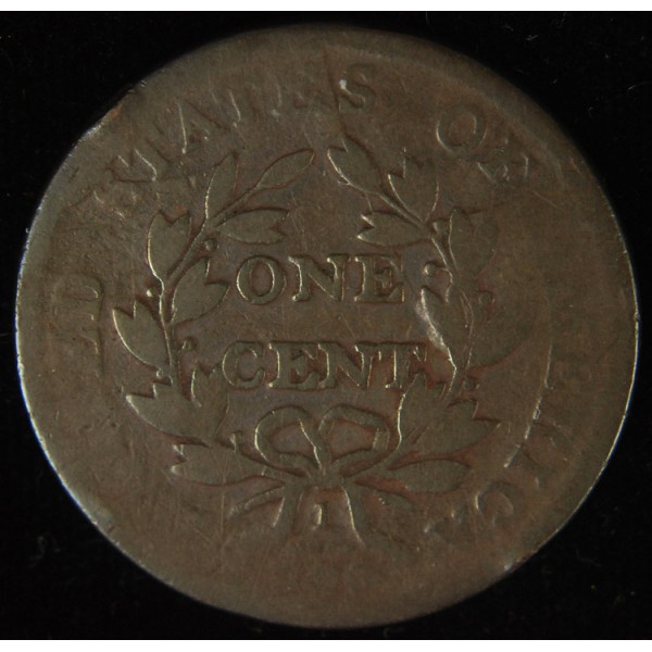 Very cool coin, it's an S236 which is an R1 very common variety. The interesting part of this coin is the very late die state, with a cud above the ST in states and all the die cracks present on the back. It's either the last, or the second to last die state. Unfortunately, these are common even in late die states and do not bring a premium, I would call this net AG3 and ave- with a value around $20.