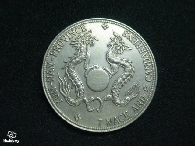 Check the link below Alonso "A 'fantasy' piece, like this one, is when someone hijacks a design and changes it to suit whatever purpose they imagine will make the coin interesting enough to sell to someone who is unfamiliar with the genuine pieces. Yunnan never issued a dragon design like that." http://en.allexperts.com/q/Coin-Collecting-2297/2009/6/Yunnan-Province-7-mace.htm