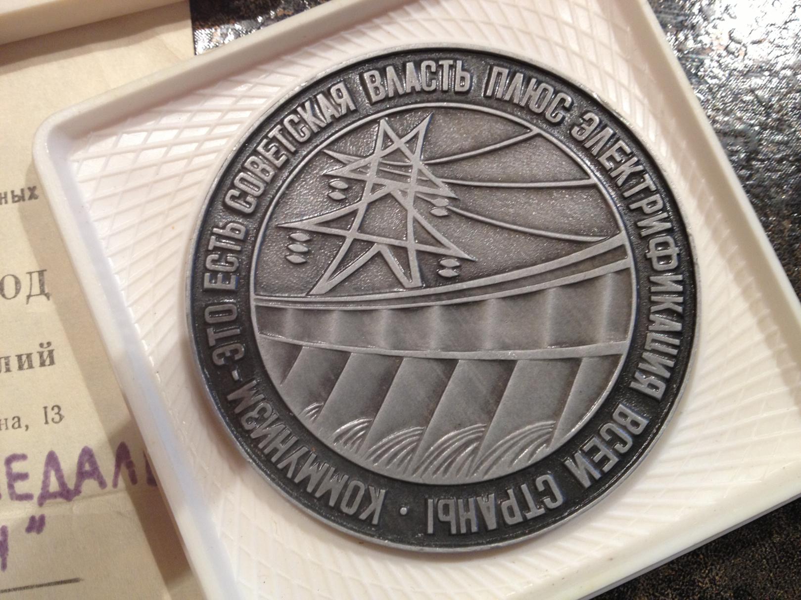 Back of coin translates to: Communism is Soviet power plus the electrification of the whole country Front is bust of Lenin I have not found this coin/medallion/commemorative piece anywhere. Anyone know what it is?