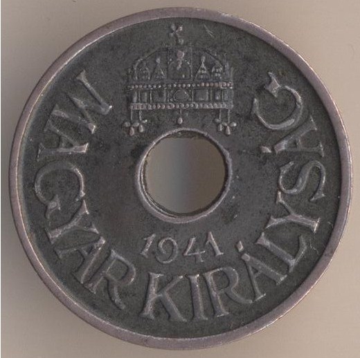 20 filler 1941, iron, weight - 3,56 g., size - 21 mm, thickness - 1,75 mm, mintage - 75007415 pcs. Engraver: Lajos Beran. Coins of this type were released at 1940-42. Demonetized at December 31 1945.