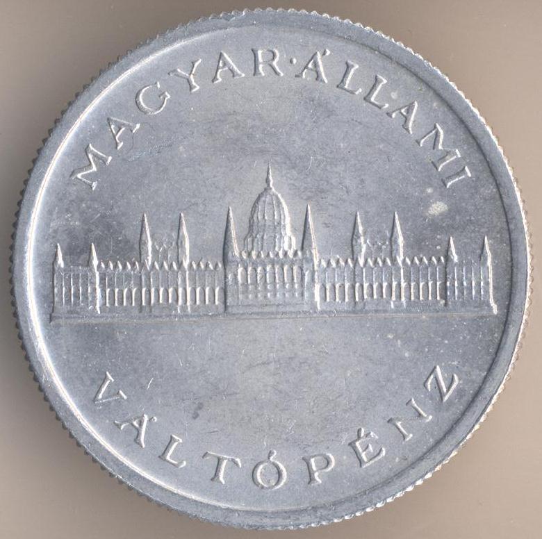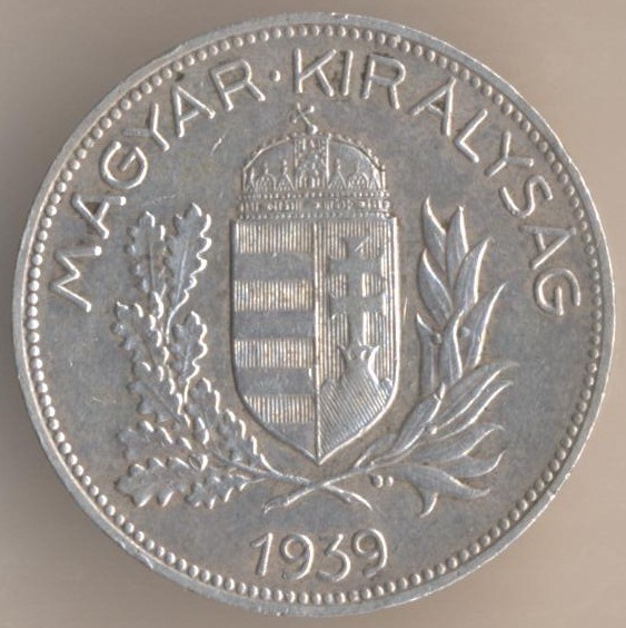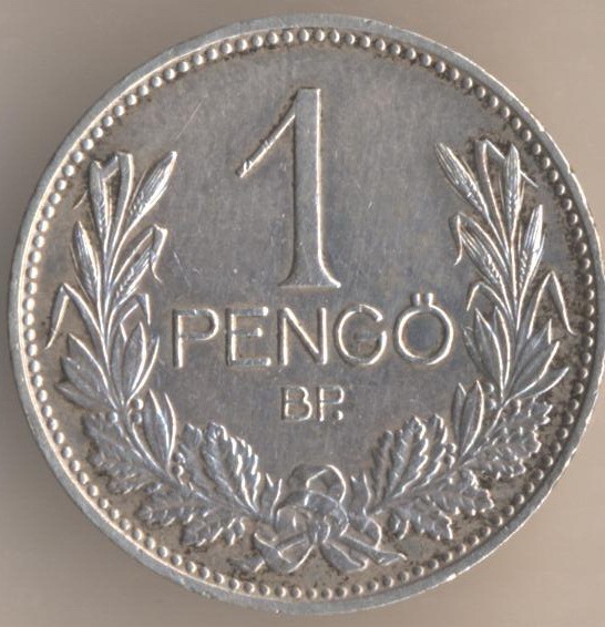 1 pengo 1939, silver .640, weight - 5 g., size - 22,88 mm, mintage - 13000000 pcs. Coins of this type were released at 1926, 1927 and 1937-39.