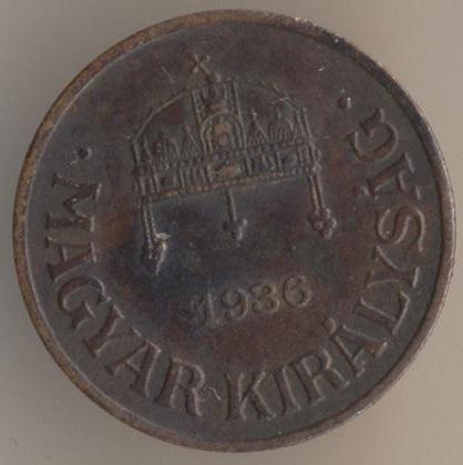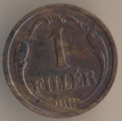 1 filler 1936, bronze, weight - 1,7 g., size - 16,5 mm, mintage - 10000000 pcs. Coins of this type were released at 1926-36 and 1938-39. Demonetized at December 31 1945.