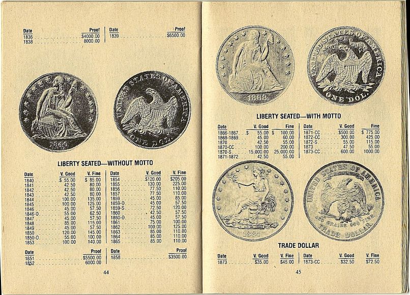 I have a copy of that book from 1983 - got it from my great grandmother who collected coins a bit, hoarded silver here and there, and owned an antique shop in springfield, illinois - I was too young when she passed to know anything about her collections, wish I knew her more though. Maybe I can drudge up mine and make some scans for ya'll to look at some funny prices!! Some of the coins were considered too common or new and they wouldn't buy them, like all the Franklins and silver Kennedys. They considered them face value even in '83, wow!