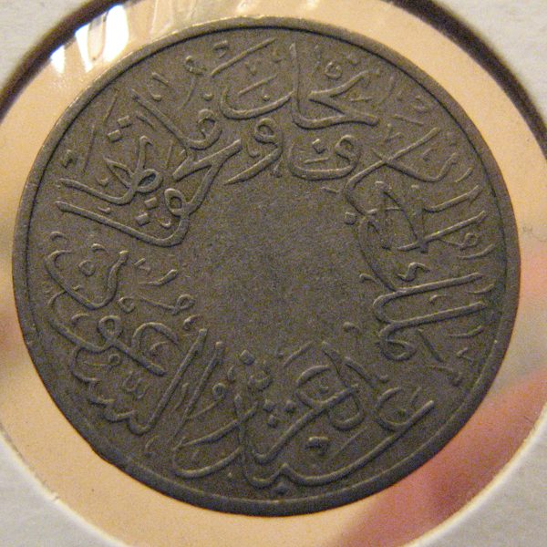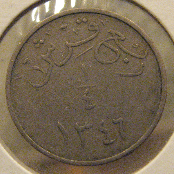 Kingdom of Hejaz and Nejd. 1/4 ghirsh 1346 (1928), copper-nickel, mintage - 3000000 pcs. The single release only. KM#7. Page № 977 (Krause).
