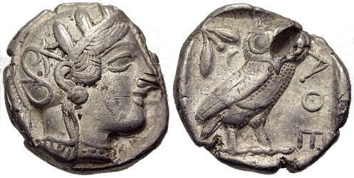 If any coin is "the most famous" ancient coin, it would be this one. I waited a long time to find one that was priced low and still met my minimum condition requirements. I finally settled on... It has a few minor problems, and the often ubiquitous test cut in the owl's head, but it was a good find for the right price. For further (free online!) reading, you can read all about the series at http://rg.ancients.info/owls/ There's lots of research you can do online before you start shelling out for the often-expensive books on ancient coins (many of them have low print runs and prices quickly skyrocket). Figure out what areas interest you the most, then dig in to the printed literature. If you want some good starter books, try the inexpensive six-volume series by Wayne G. Sayles, available through Amazon and other outlets.