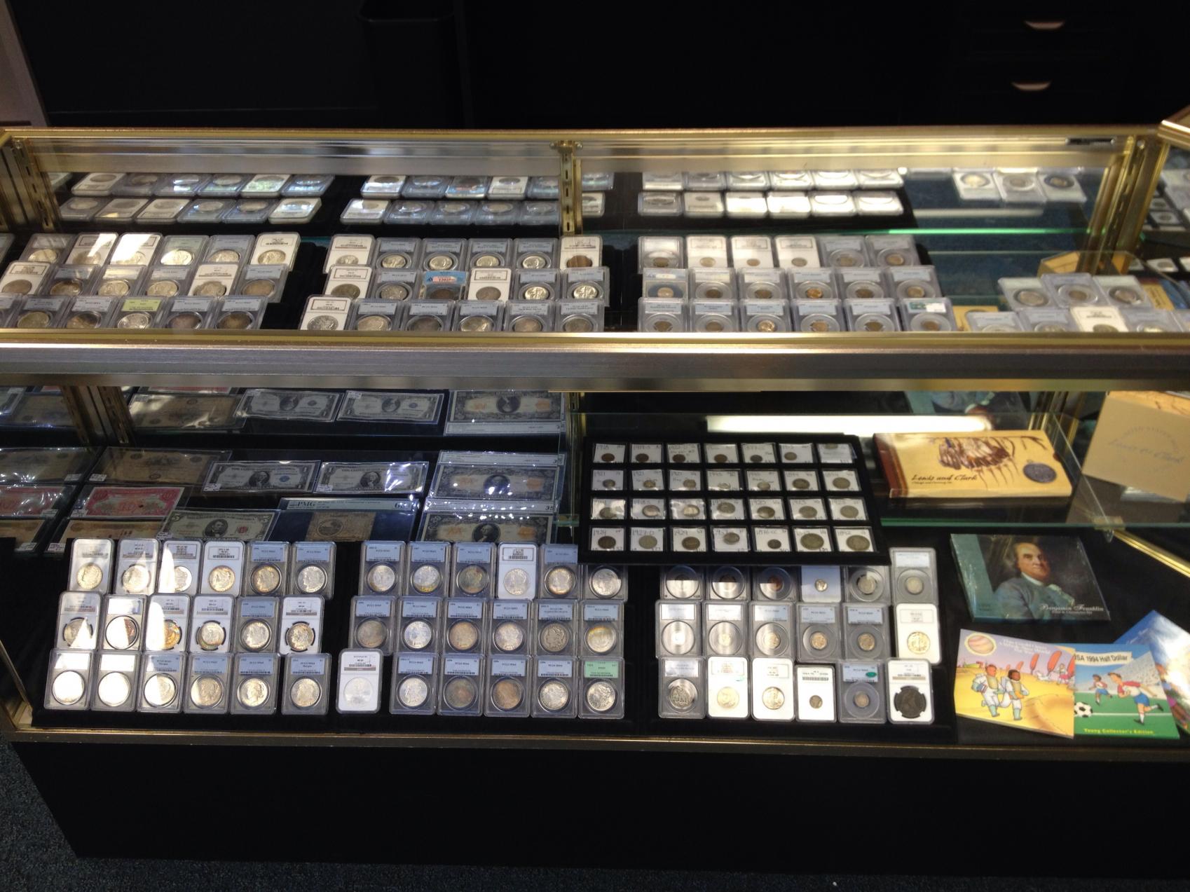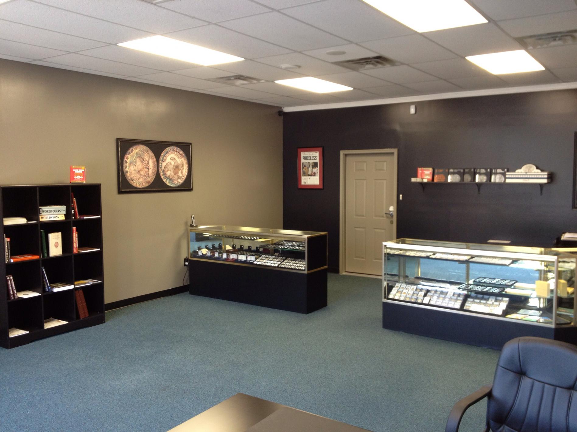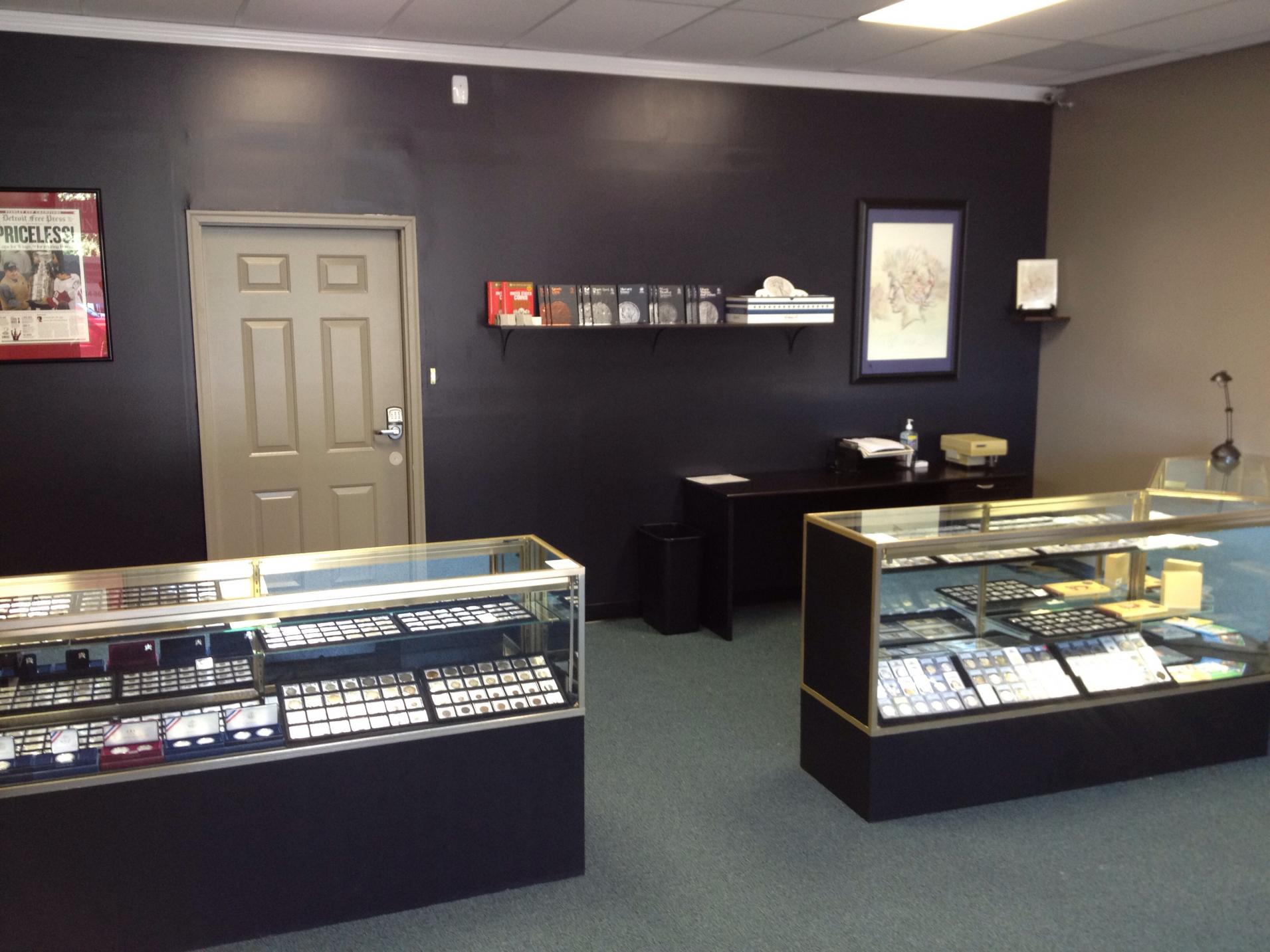 Well, I haven't posted too much in the past couple years but I have been around reading & visiting the site all along. The past 2 months I have been quite busy. As some of you know, I worked for a decent size coin company for nearly the past 7 years. That came to an end on the 1st of May & I went out on my own. I have started my own shop just over the Michigan border from my hometown of Toledo, OH.I did all the remodel my self , putting countless hours into the place.Buliding walls,painting ,sanding,installing security cameras ,gates & locks ,buliding furniture,moving cases,& the list goes on & on . Now , a place I can call my own with my own rules & policies . In Ohio we have sales tax on bullion & numismatic items, in Michigan there is NO sales tax. A nice advantage for me over the competition being so close to the border. If anyone is in the area stop by I'd like to meet any of you & talk coins ,heck even sell you something . So come by Bedford Coin & Jewelry ,say hello & check it out. I do have a website (although it is not fully updated ) & a facebook edited if you would care to like it. Here are a couple pics of my shop. More display cases ,ect.. will be coming in over the next month. I should be a bit more active on the forum but if not I hope it is because I'm really busy in the shop. Jason Rodgers Owner - Numismatist Bedford Coin & Jewelry Oh & Hontonai , I never looked back