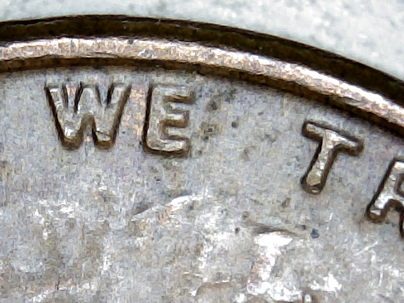 I see what you're talking about, it may just be a fignewton of my imagination but it looks like something in the field to the right of the E.