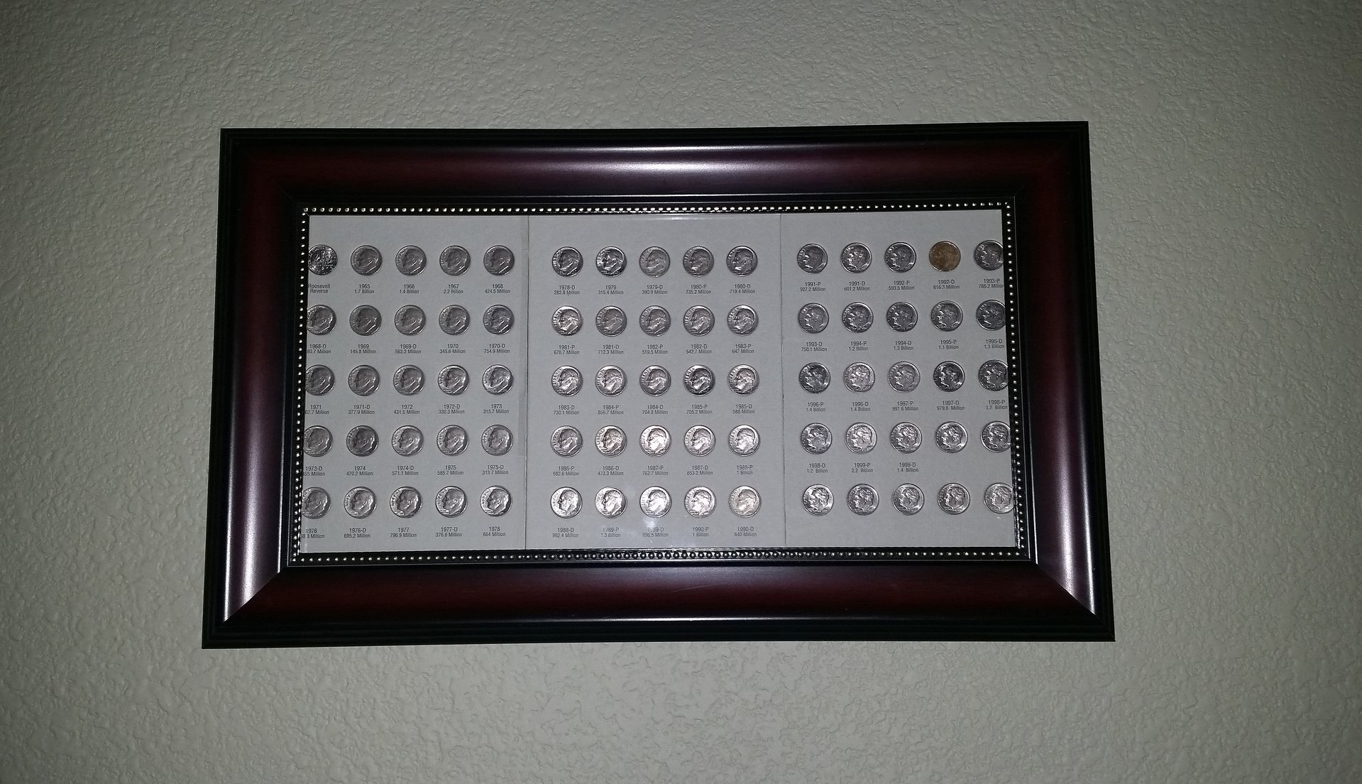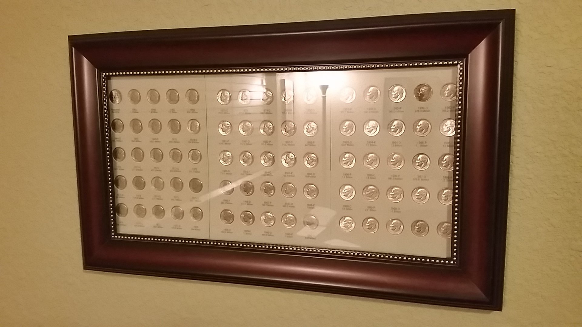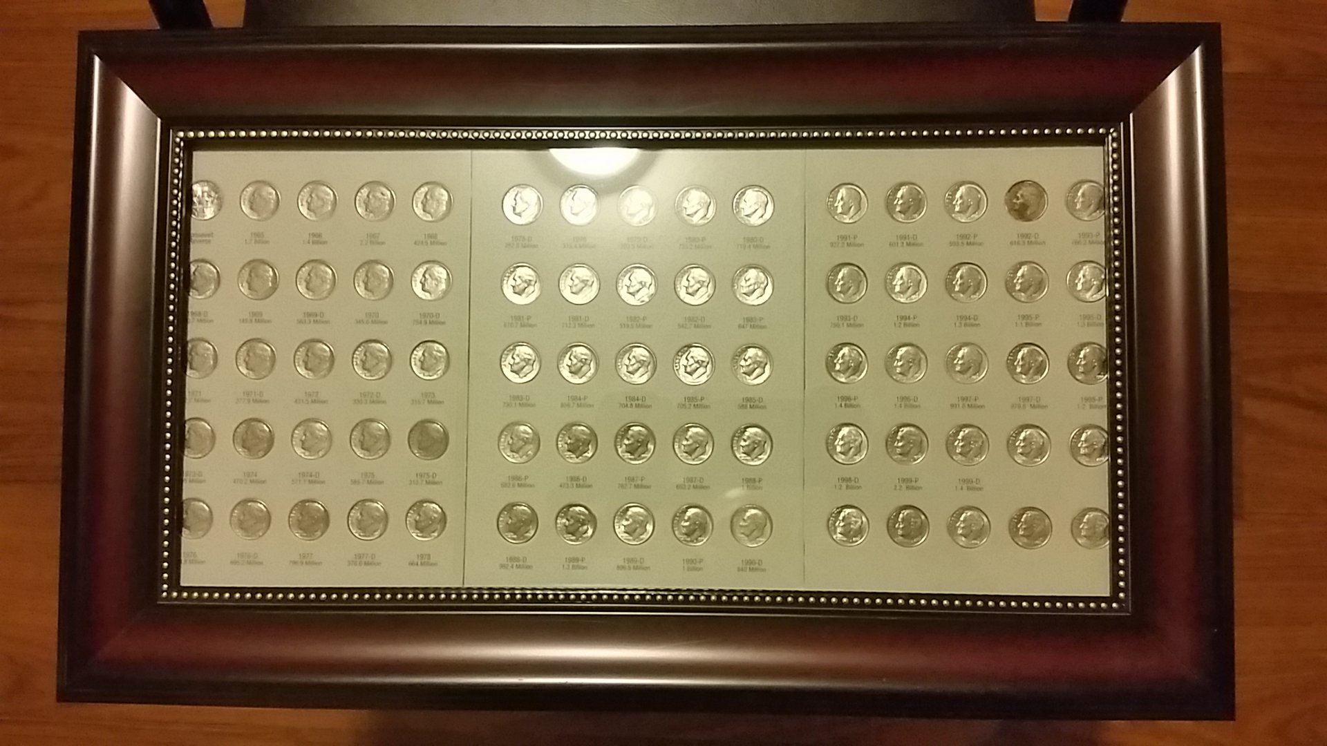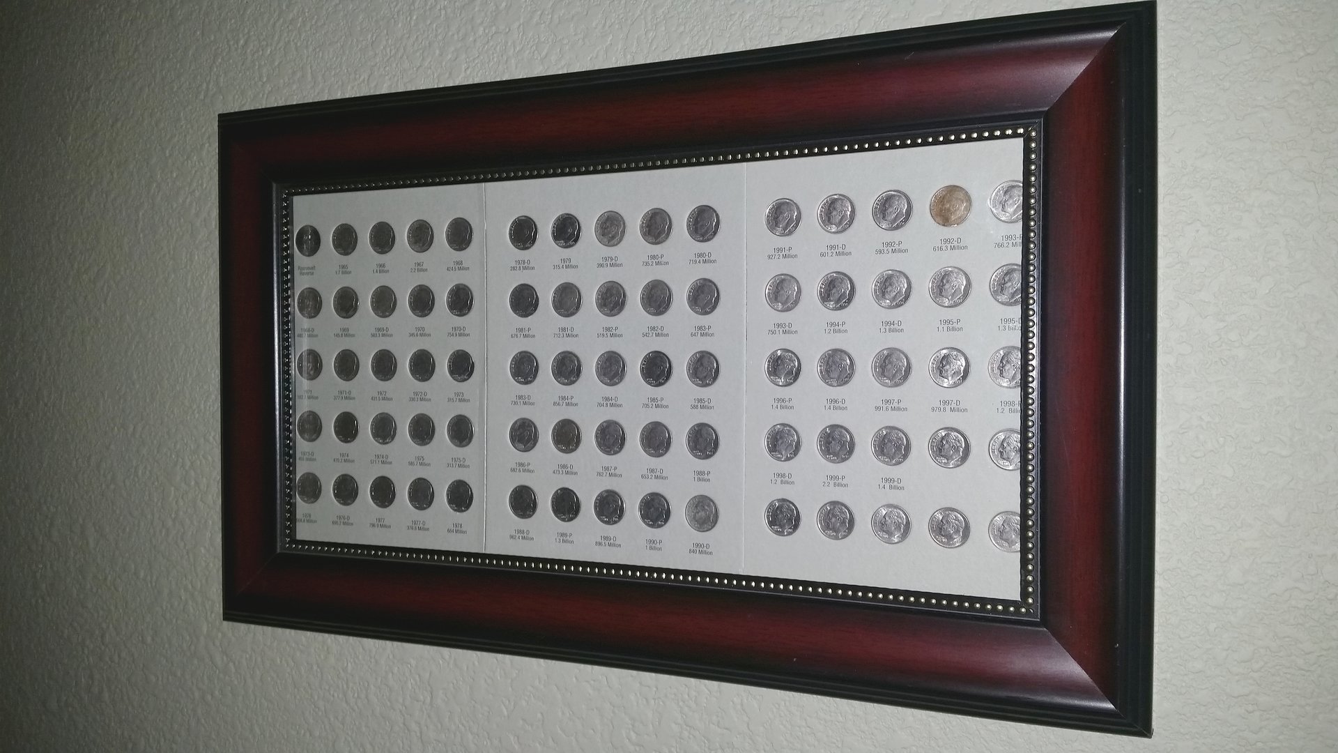 Very nice collection and framing of your Dimes. Definitely belongs in your den. congrads on finishing your project. Now you have me wondering how a "half" collection would look like.