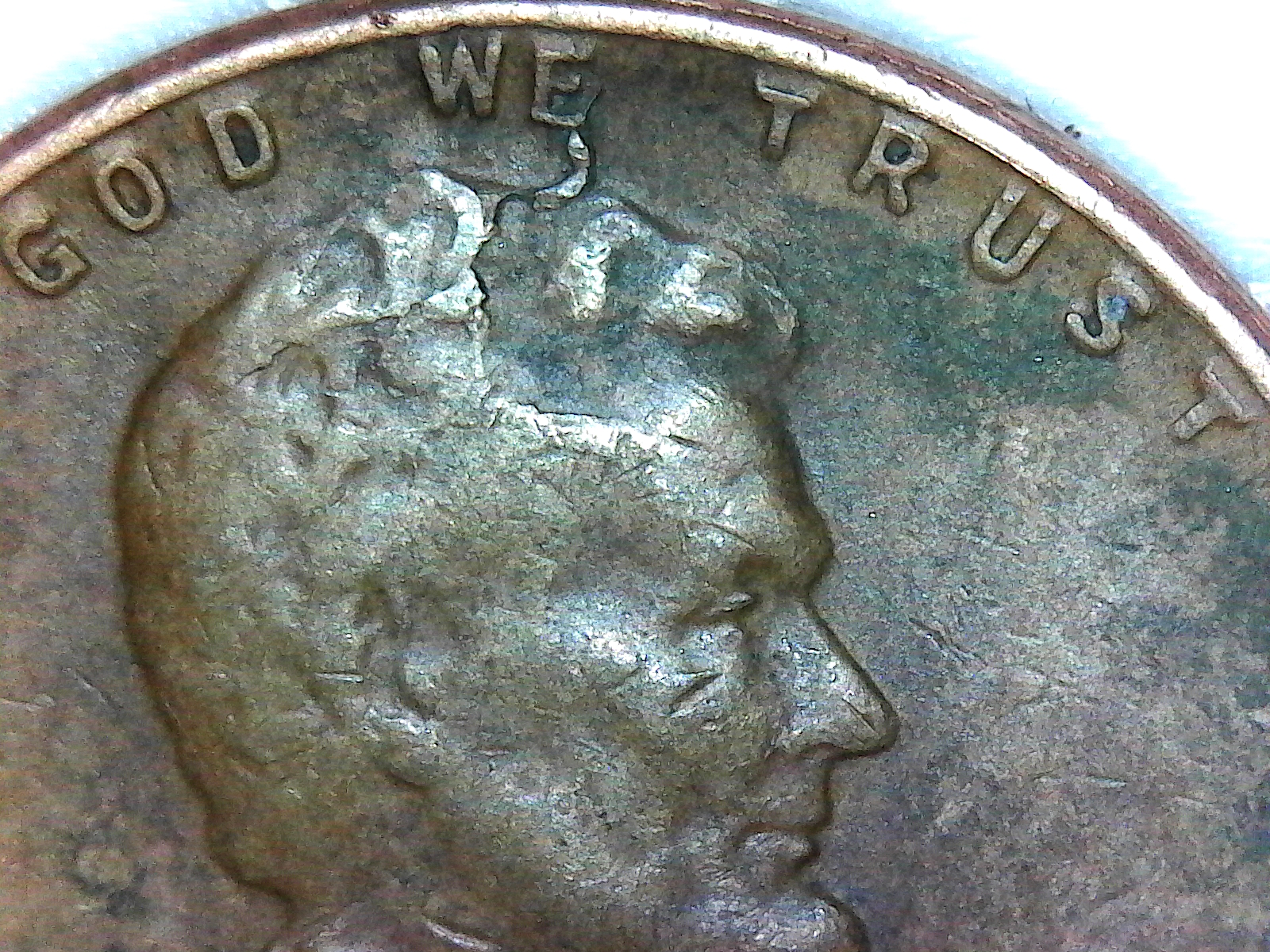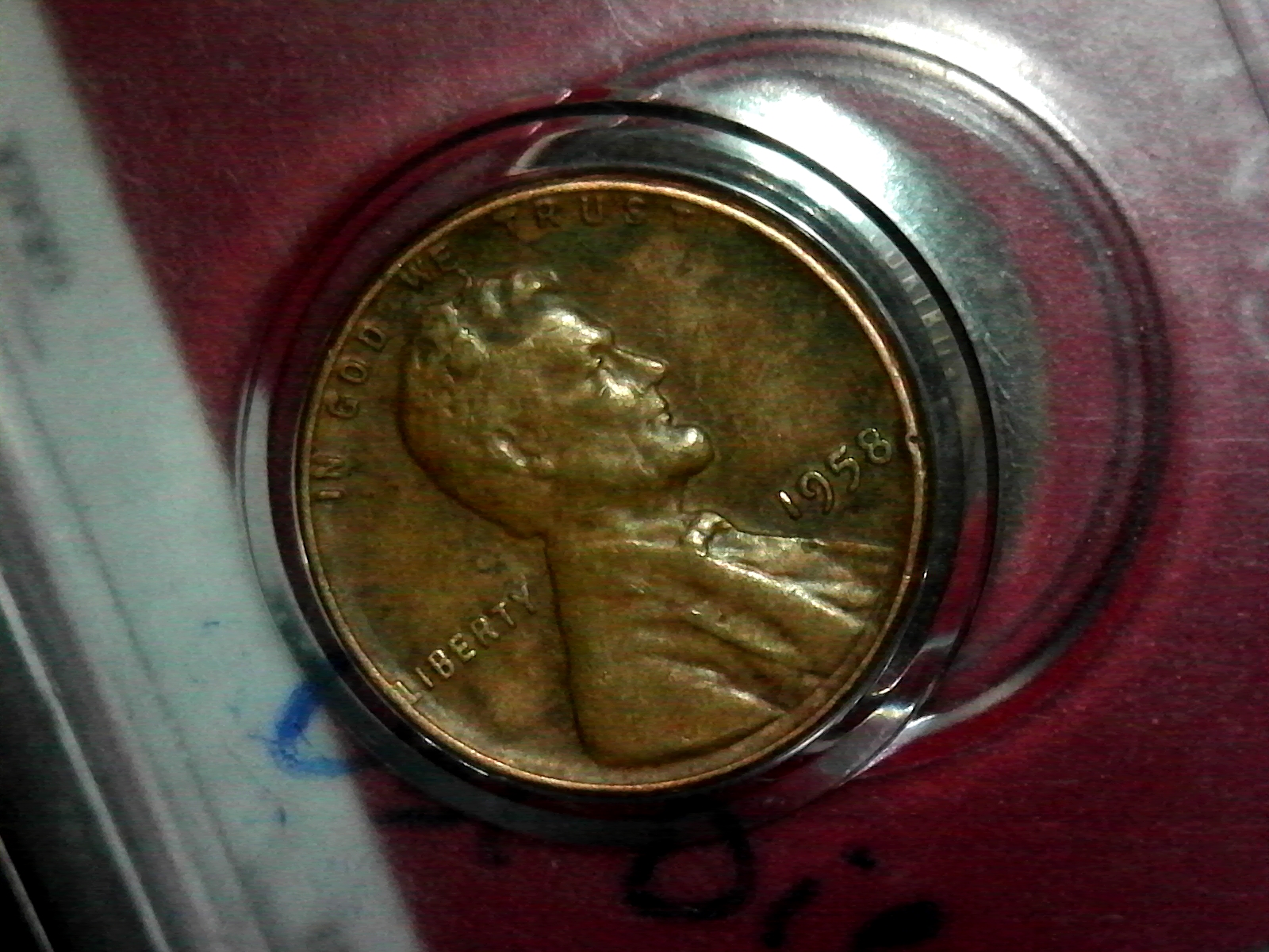 Note: 1958 DDO! See notches on logo...photo from your's truly doubleddie.com picture shown cut on Lincoln's ear matched in same area as my 1958 at 100%