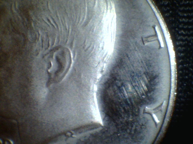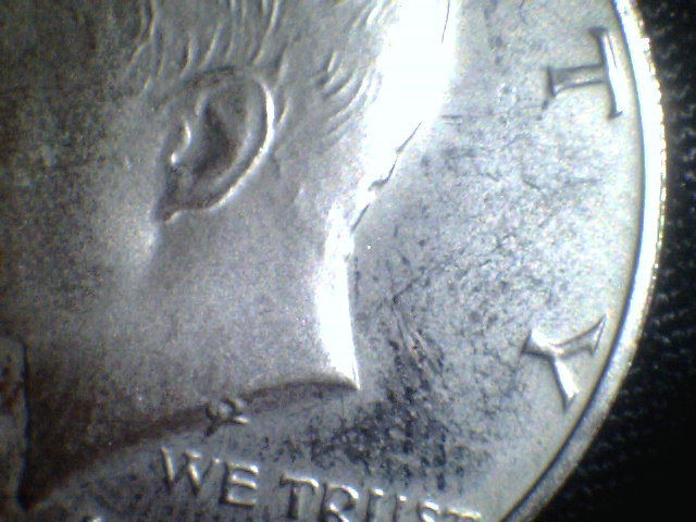 The frosted devices on a more modern proof Kennedy are a little scary looking, as it's a entirely different process now. see link: http://boards.collectors-society.com/ubbthreads.php?ubb=showflat&Number=5684223&fpart=1