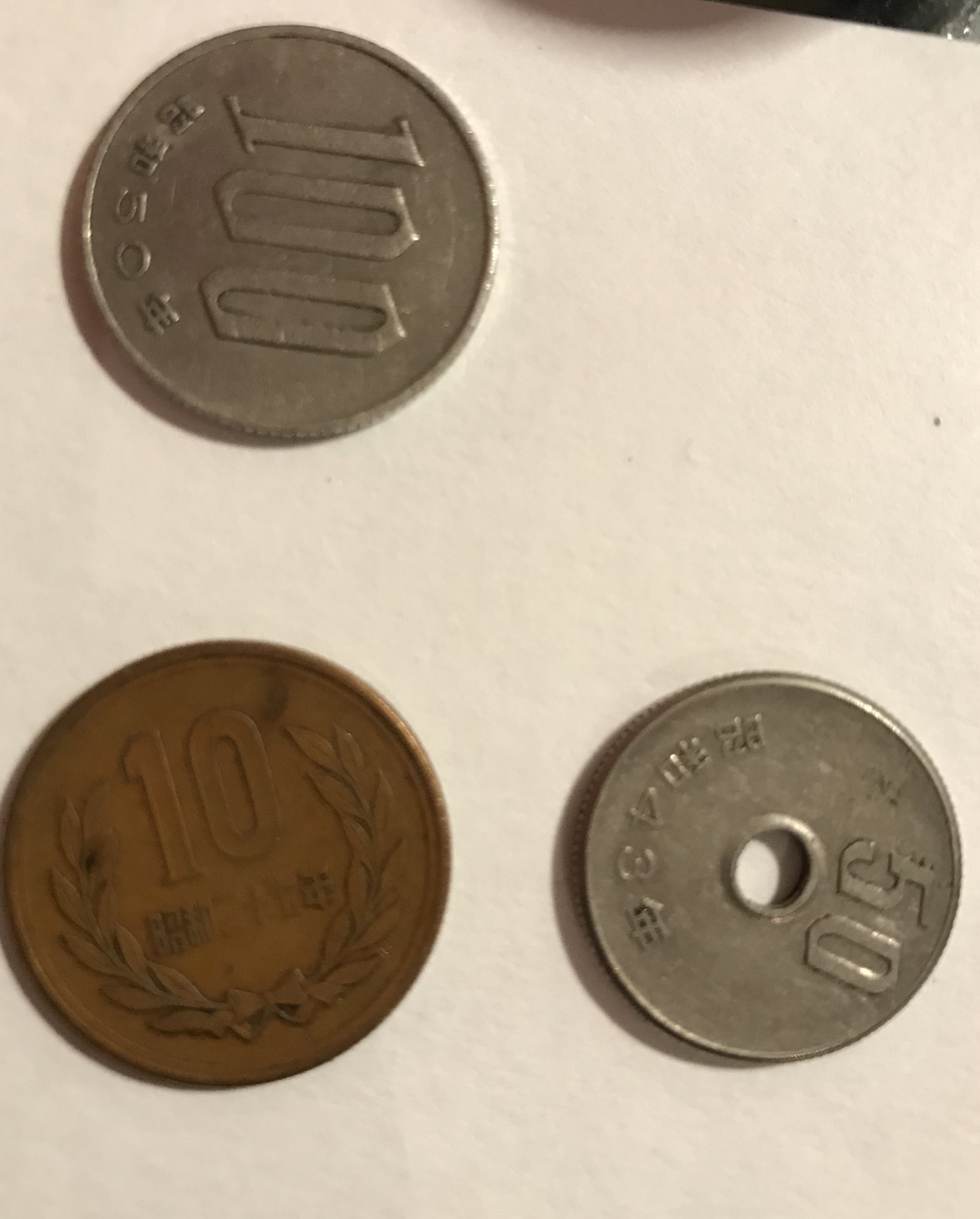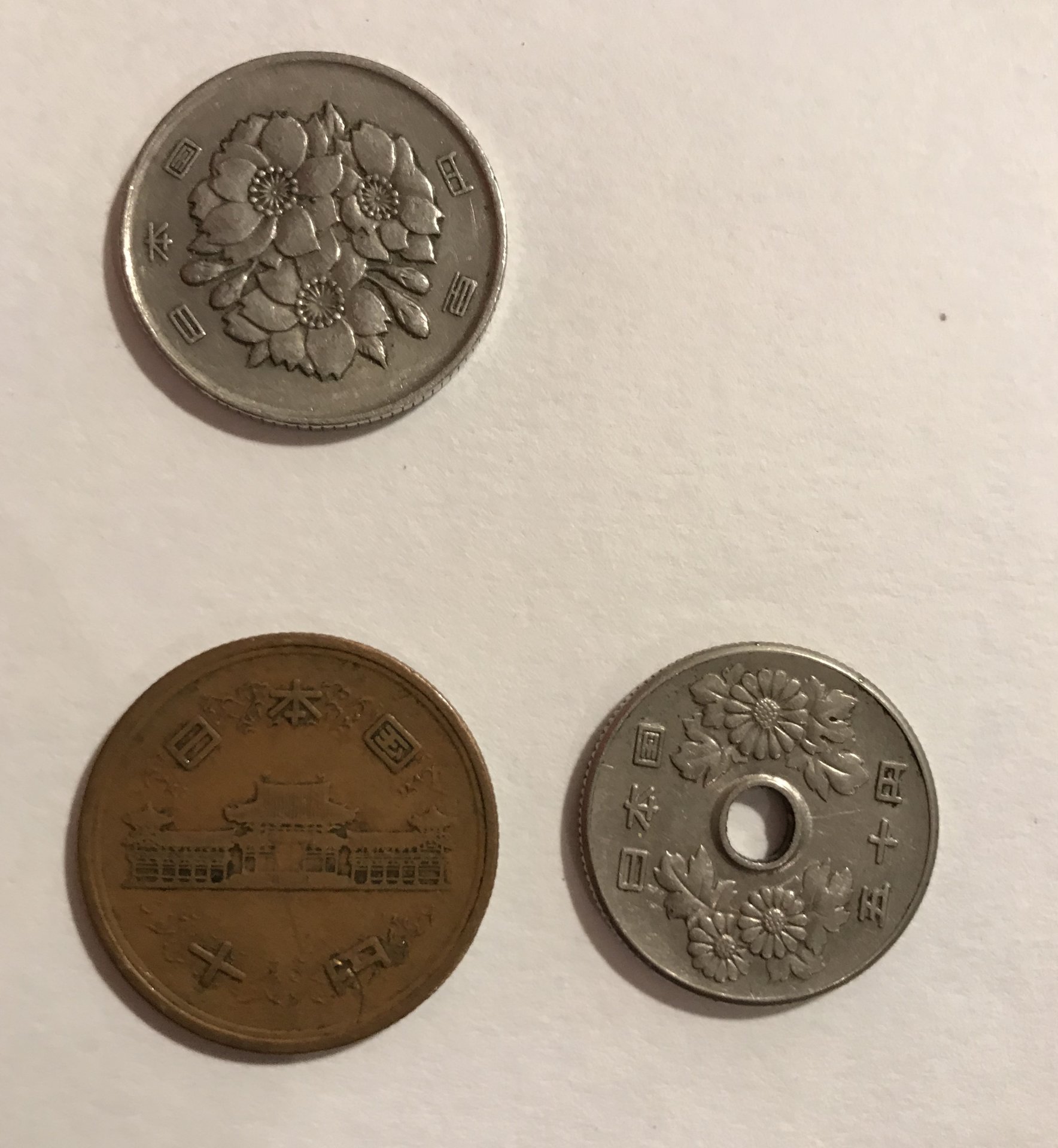 Yes, these are all modern Japanese coins and in their circulated condition they don't have much value, but they are cool coins anyway. Top coin: 100 Yen (百円), Showa 50 (昭和50年) or 1975 Botttom Left: 10 Yen (十円), Showa 27 (昭和二十七年) or 1952 - Type I milled edge Bottom Right: 50 Yen (五十円), Showa 43 (昭和43年) or 1968 The 日本国 on each coin stands for Japan, or "Nihonkoku" or "Nipponkoku" as Japan refers to itself.