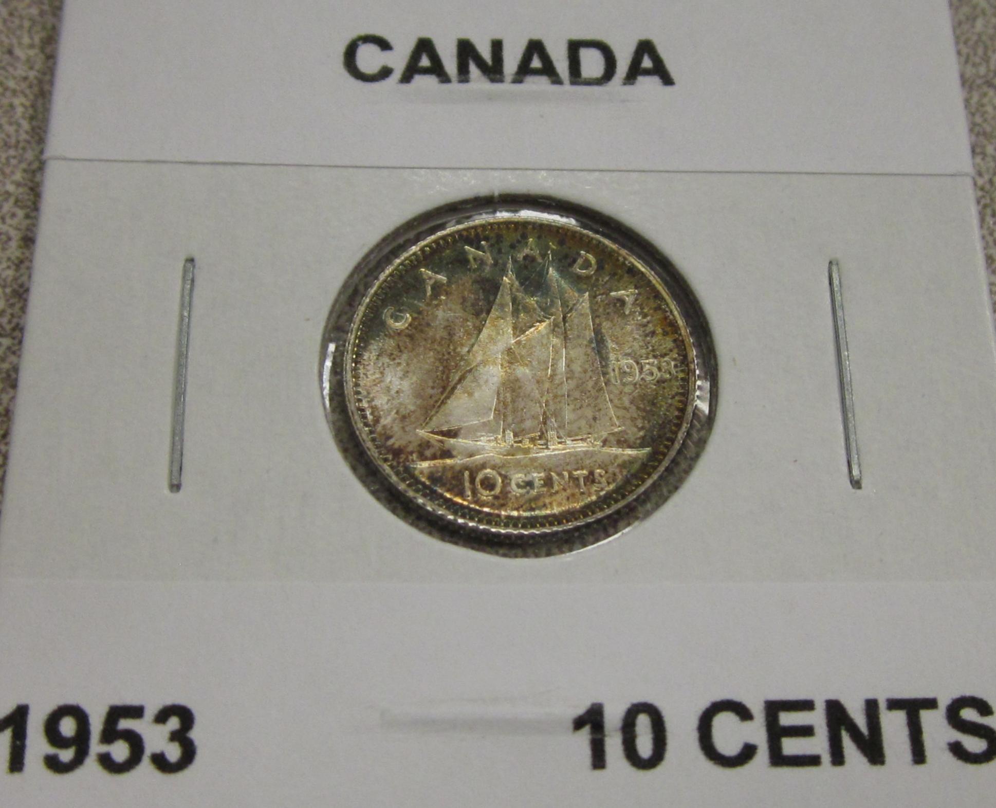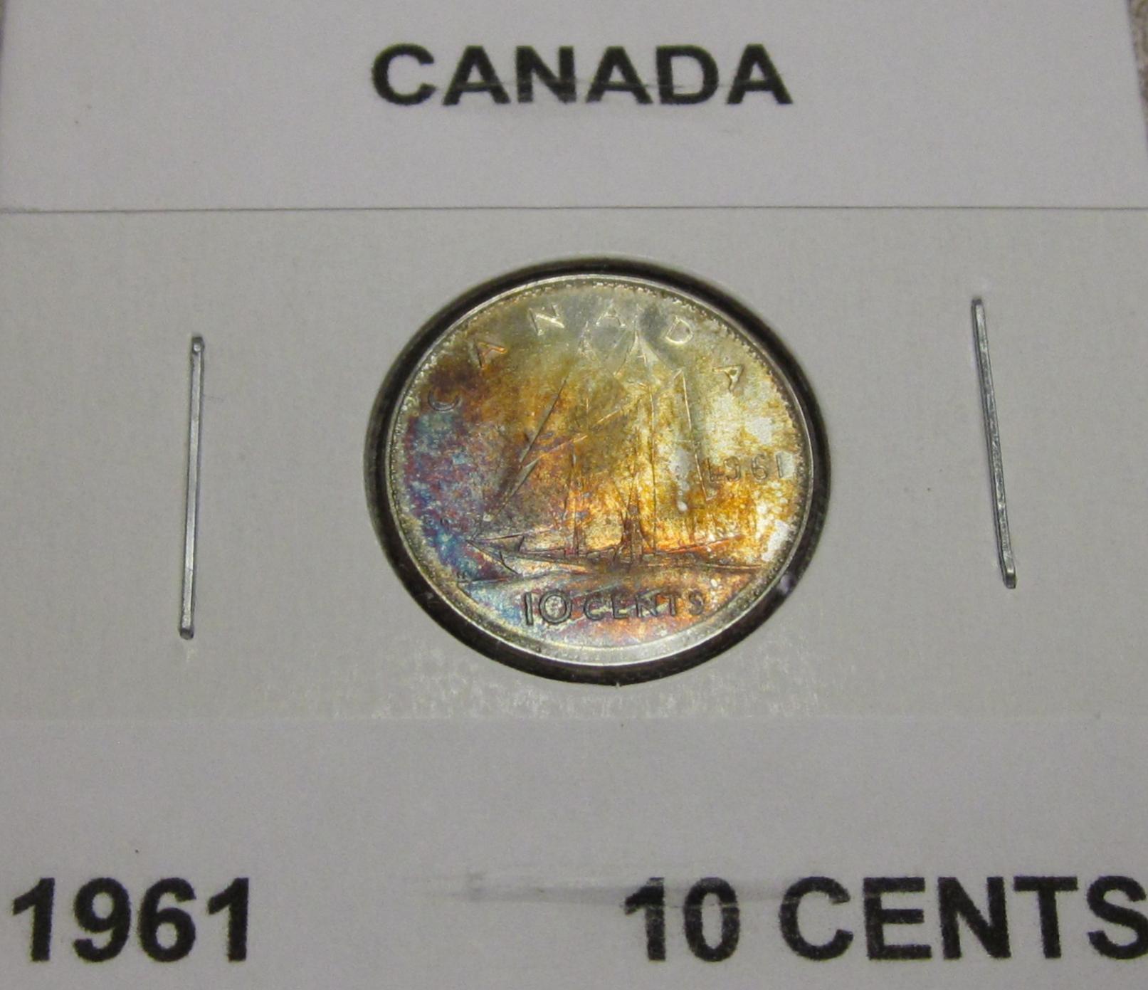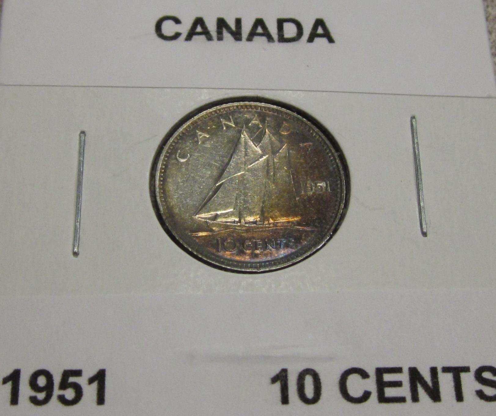 Ship name is Bluenose Thank you for the coin complement. I think everyone that has posted probably knows the name of the sailing ship on the Canada dime. The name of the ship is the Bluenose. I assume that is spelled correctly. :smile Here are some additional toned bluenose examples. (I know, the 1950 is the nicest one ).