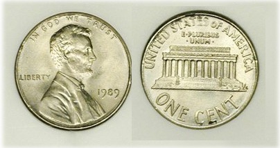 Here is an unplated cent dated 1989.