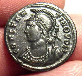 I had decided to stop getting distracted by LRB and to save up for a big Greek silver coin. I have failed miserably. I saw this coin and bought it along with another couple of Lugdunum coins. Ho Hum. Another hole in my budget. Constantinian Period City Commemorative Obv:-- CONSTANTINOPOLIS, Helmeted and laureate Constantinopolis bust left Rev:-- --, Victory standing left on prow of a galley, holding transverse spear across her body and shield Minted in Lugdunum. dot in Crescent PLG in exe. A.D. 330 - 333 Reference:-- RIC Lugdunum 256 (R1). Bastien Vol. XIII 222. I thought the bust to be most striking, being somehow enhanced by the flowlines radiating outwards. The reverse is also well executed. The whole coin benefiting from a decent strike and little wear. Martin