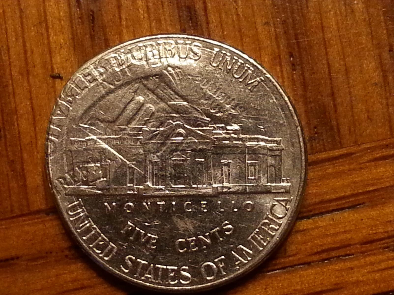 cent on nickel is impossible. this coin was created by squeezing a nickel between two cents. post mint damage only.