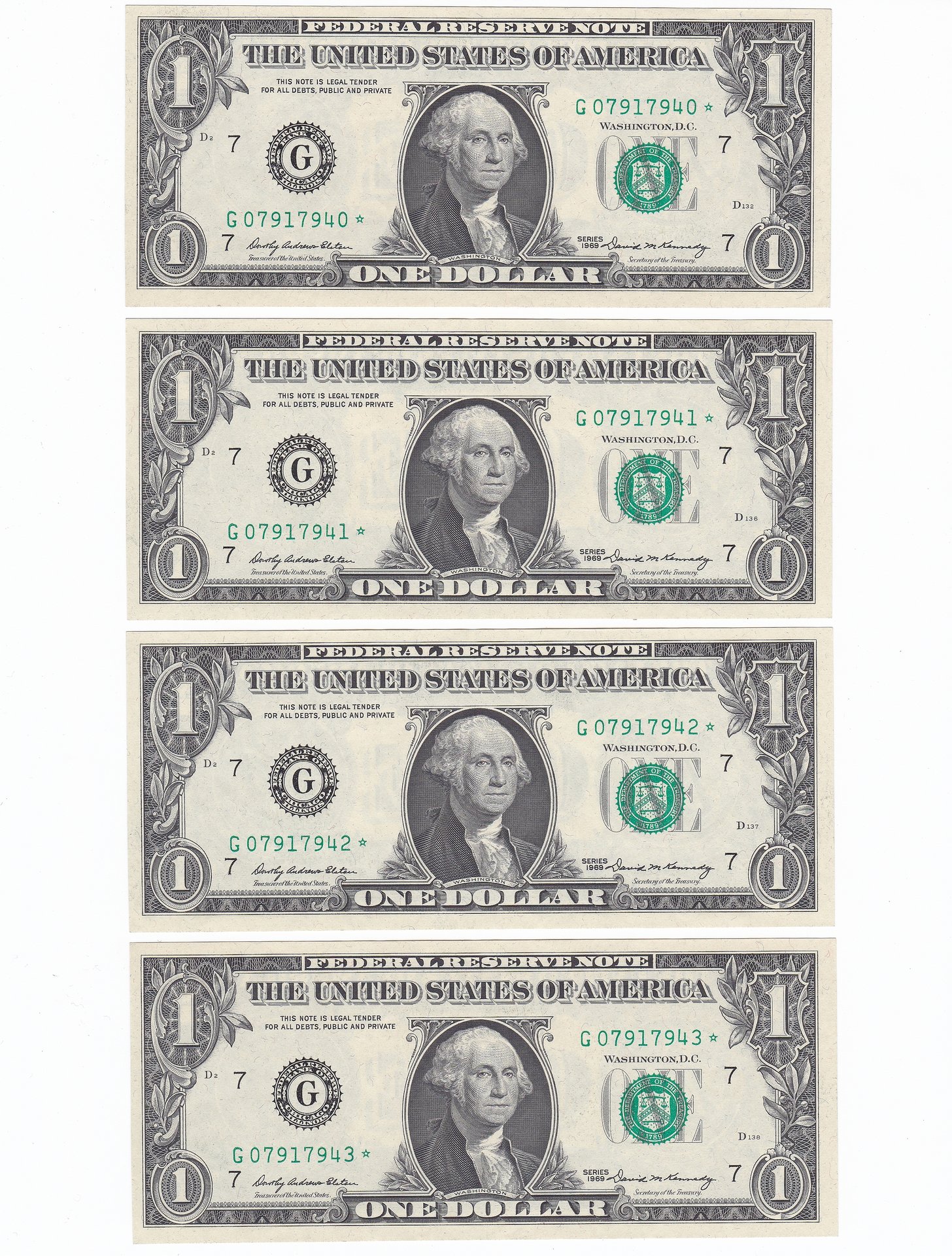 All four of those are from runs of 640,000, which was the standard full run back then. But with standard runs that small, there were a *lot* of star runs per series (over 500 in Series 1963A!), and so nobody really collects these things by run--the totals for each series/district are what to look at. And those would be: 1969 G..* = 11,680,000 1963B L..* = 3,040,000 1963A D..* = 20,640,000 1963 B..* = 15,040,000