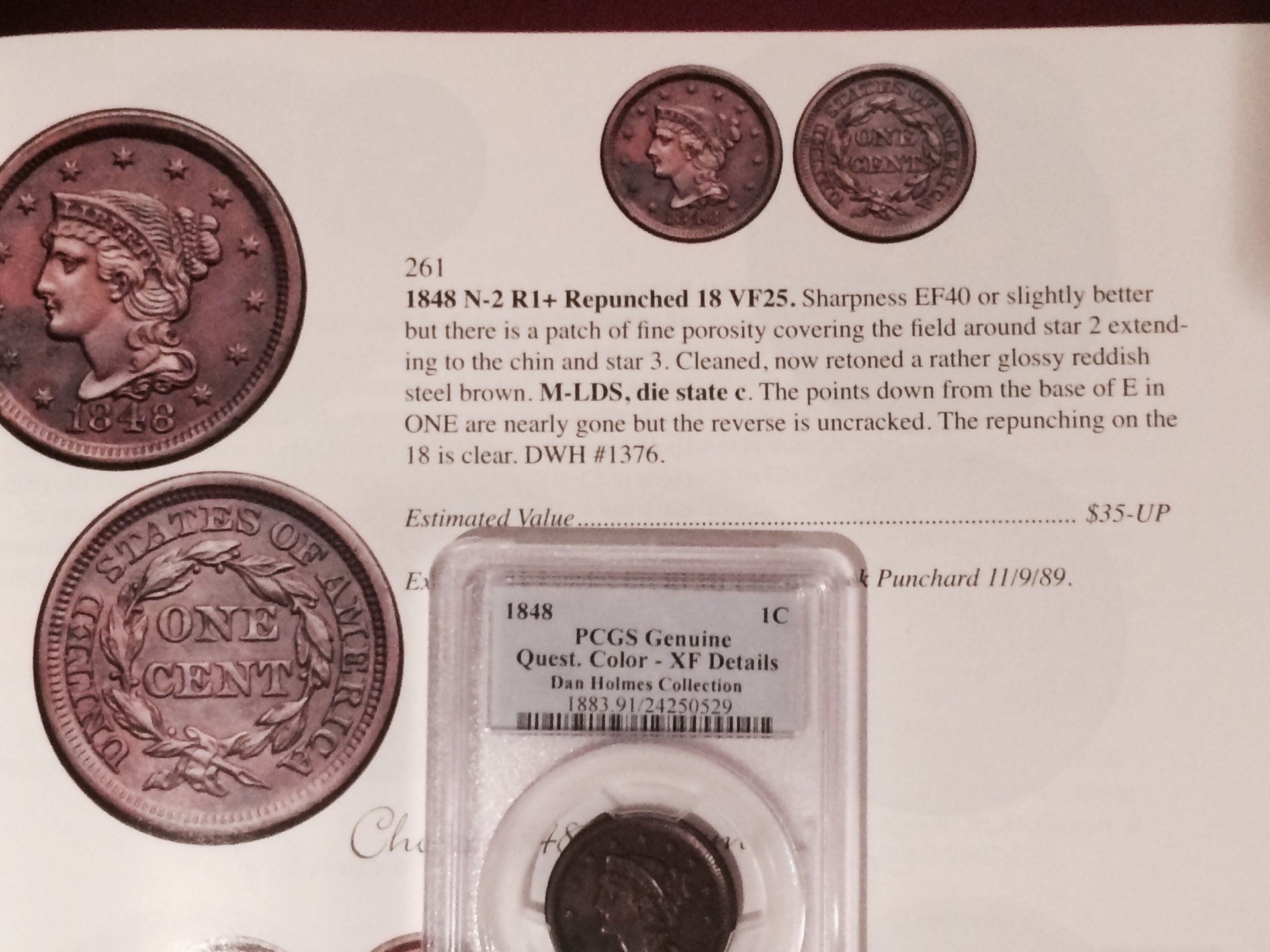 I got it in today, so here it is with the auction catalog page. It now has the very awesome McCawley/Punchard/Holmes/Kirkuleez provenance. The reverse is pretty dark so I lightened it up a bit, but the obverse is pretty much as it looks in hand.