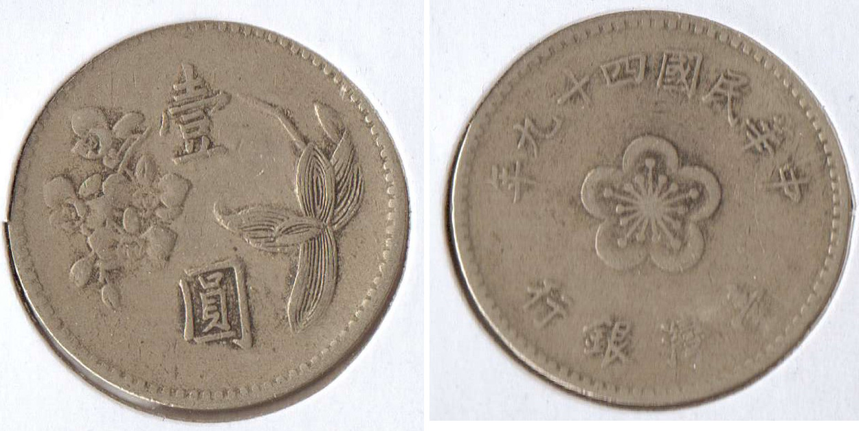 1) Taiwan - 1 Yuan - 1960 - Yr.49 - KM#536 2) Japan - 10 Sen - 1922 - Yr.11 - KM#49 3) Muscat & Oman - 3 Baisa - 1958/1959 - Yr.1378,AH - KM#30