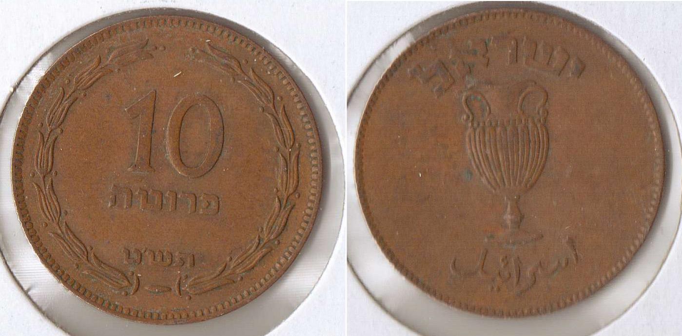 There are 4 versions for 10 pruta, you got the slightly more valuable bronze version from 1949. Still about $1 in this condition without pearl.