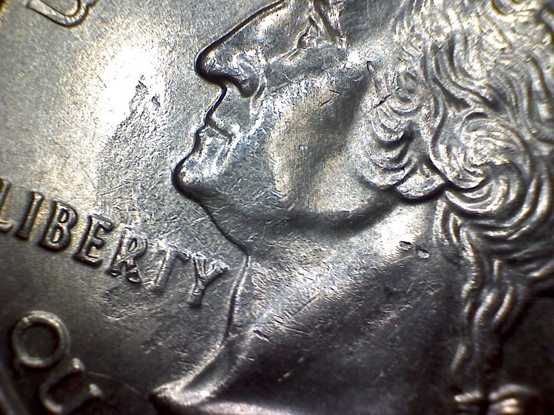 They are on the obverse and reverse. One larger area under Liberty and smaller area down neck and one at the bird's breast. What is the cause?