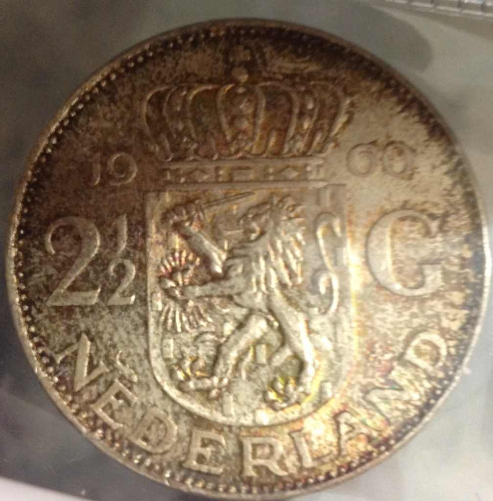 Hi! Today I picked up this beautifully toned 2 1/2 Guilder from 1960. It has a fingerprint on the obverse. Is it still considered uncirculated? That's what I bought it as. Also, does the toning look natural? Just wondering. Thanks! Ben