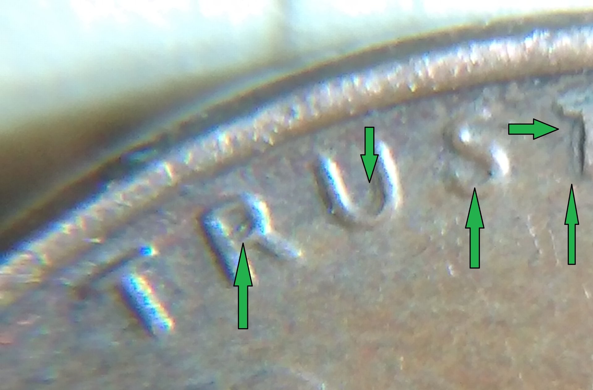 But a side by side of that die (WDDR-003) still shows the same thing I'm seeing. There is a disturbance on these devices that are machine doubled compared with the Wexler image that shows a rounded, hub doubled look. Not the flat shelf like edge. That is what I'm seeing on this coin.