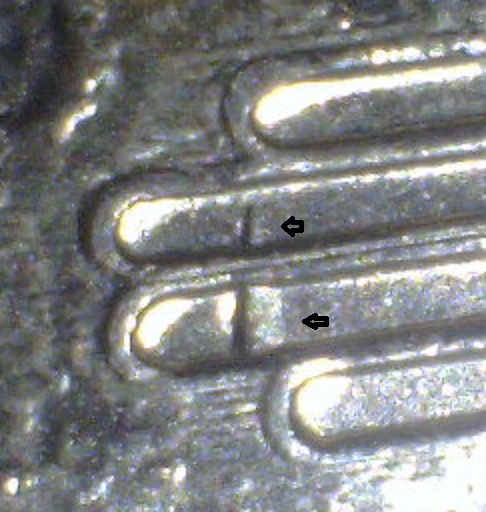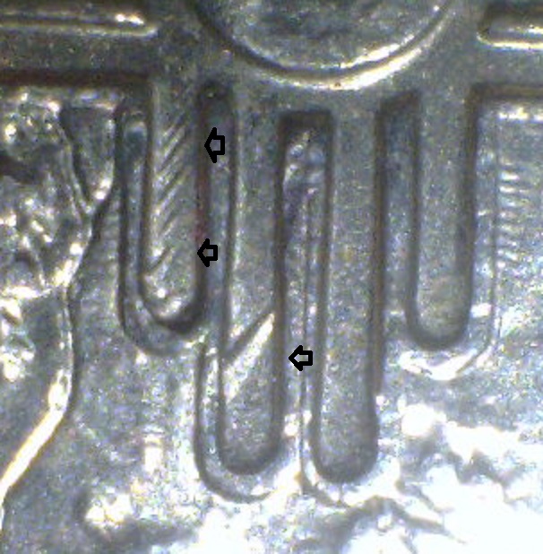 Bryan, Here's a link that shows the same type of die scrapes, but on other denominations as well. You'll see the similarity, and it's easier to see the raised nature of the scrape in these photos- http://www.error-ref.com/die-scrapes.html