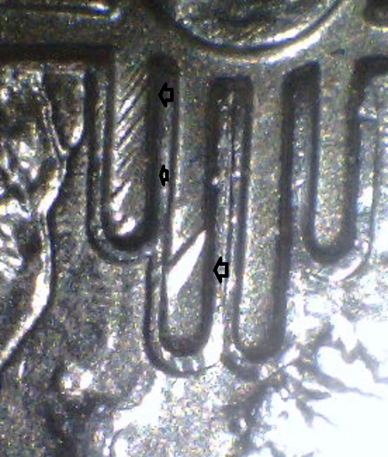 i am going out on a limb to ask a dumb question... in the first 2 pics, if that was a die gouge, would it not continue through the wall of the suns rays? iin other words wouldn't it be one gouge start to finish? not look like it ended on one spot and continued on the other side?