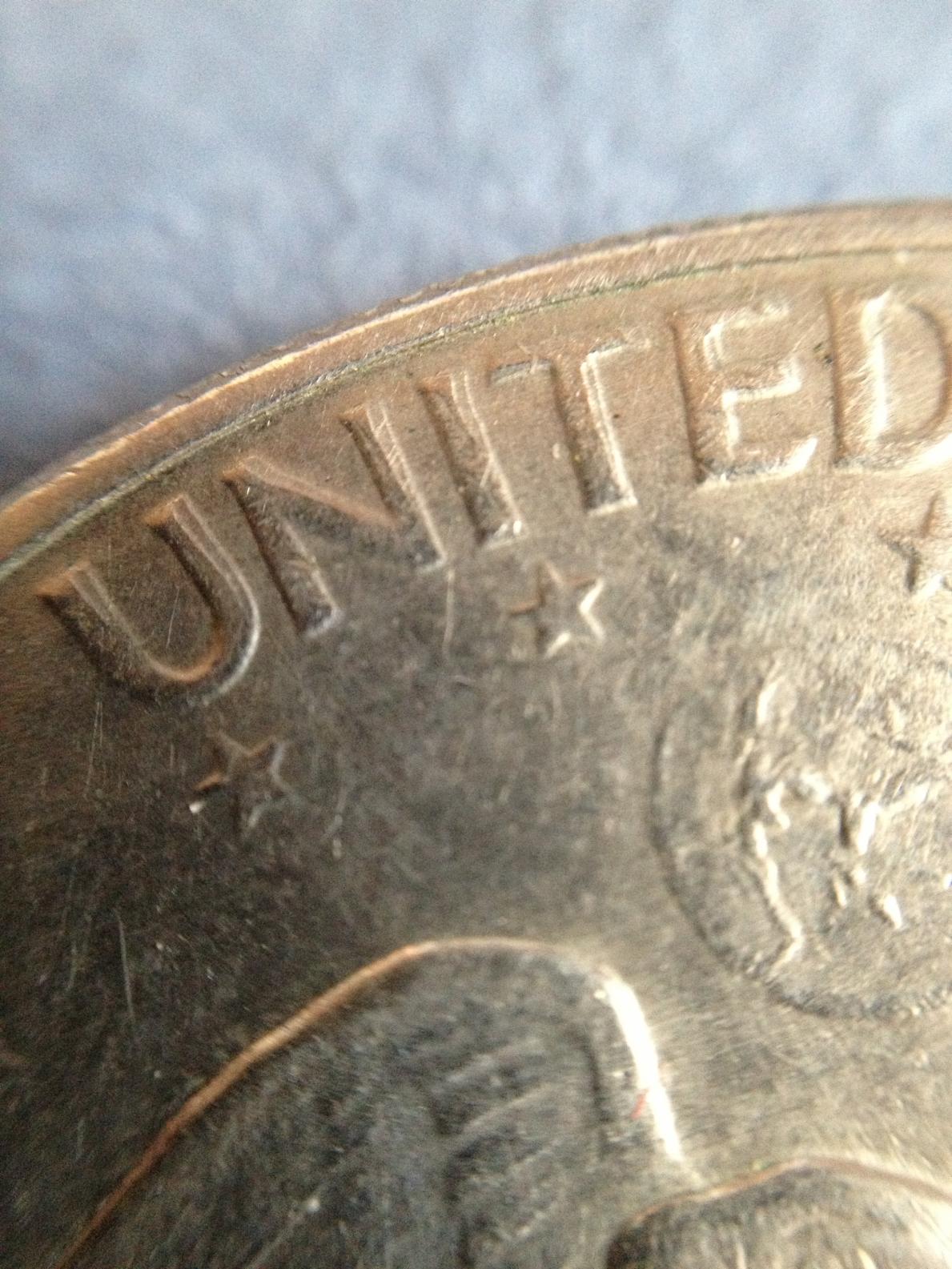 I have it here in front of Me, I see from the 1 photo that it looks like it has been cleaned but that's not the case at all. It was a Circulated Coin, but there is NO Harsh Cleaning on this coin. I have looked this thing over in a jewelers loupe and see no harsh cleaning marks. What scratches are there are from Circulation. Monday I will take it to the coin shop I deal with here and have them look it over for Me and get a better Idea about the coin.