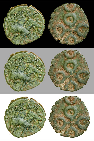 Ok, thanks guys! I will adjust the brightness and contrast until I get something better. Maybe the black background is too dark as well. The problem is that they're such dark little coins to start with! But here's another for now...