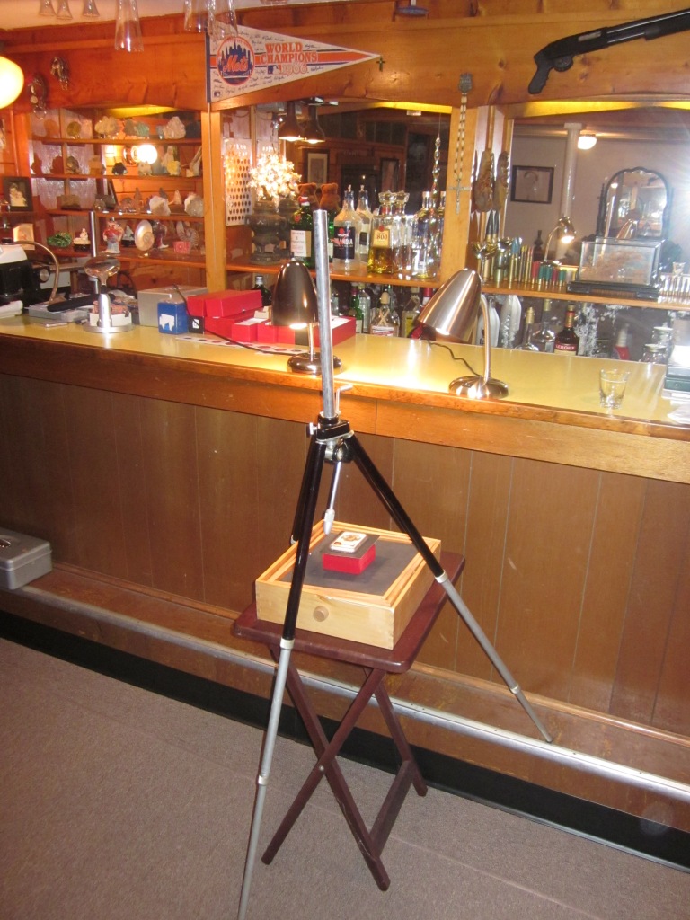 Yep. No driving home intoxicated since I'm already home. There is no shortage of friends anxious to visit either. When they are both friends and coin collectors, then the fun really begins. :smile Depending upon the coin’s surface characteristics and toning, the lamps may be diffused using a couple pieces of plain paper. I typically use drafting velum (translucent paper) as a diffuser. When photographing a proof coin, I sometimes use a tube of velum to diffuse the illumination all around the coin while minimizing the axial illumination. The camera is aimed down the tube depicted. We sometimes put a black card on the camera so that the camera’s reflection doesn’t appear in the coin’s mirror surface.